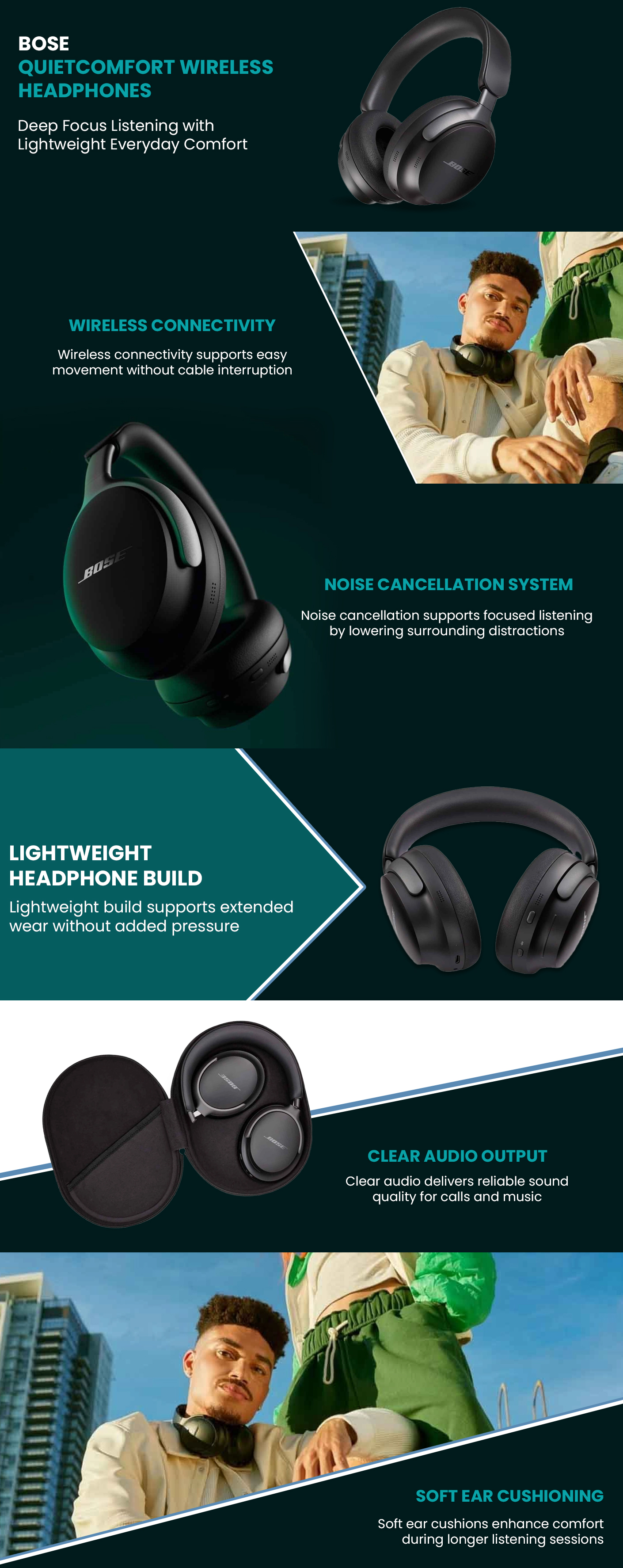 بوز كوايت كومفورت سماعات رأس لاسلكية بخاصية إلغاء الضوضاء باللون الأسود | متجر كانا