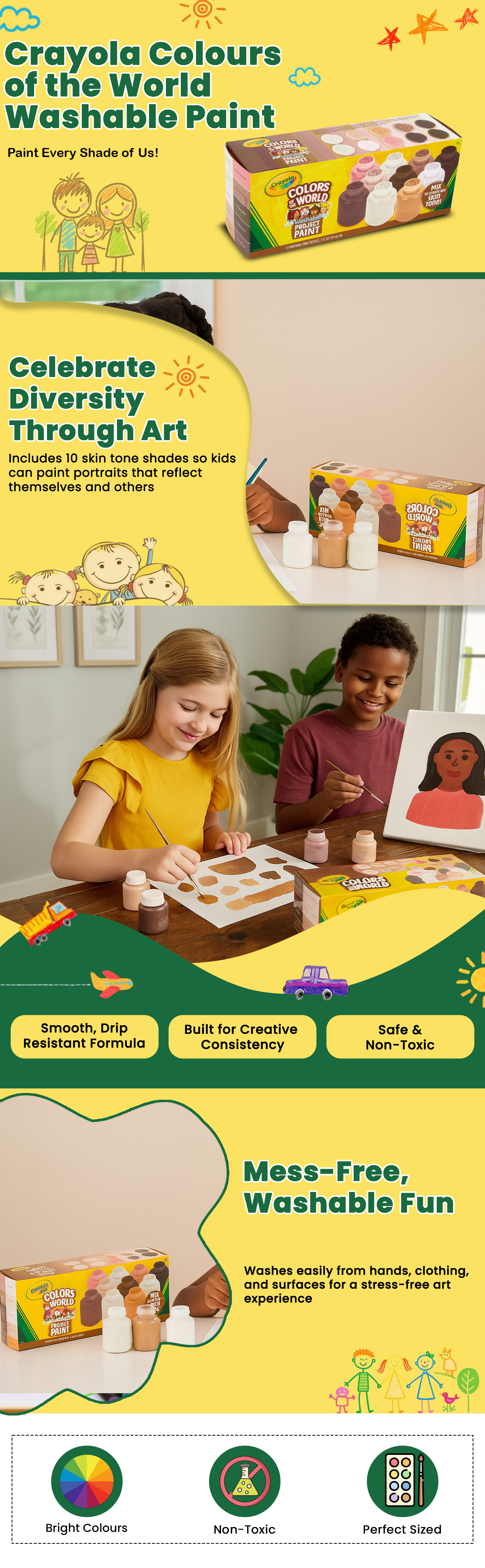 كرايولا مجموعة ألوان طلاء قابل للغسل 2 أوقية ألوان العالم – 10 زجاجات، للجنسين، 3-4 سنوات | متجر كانا