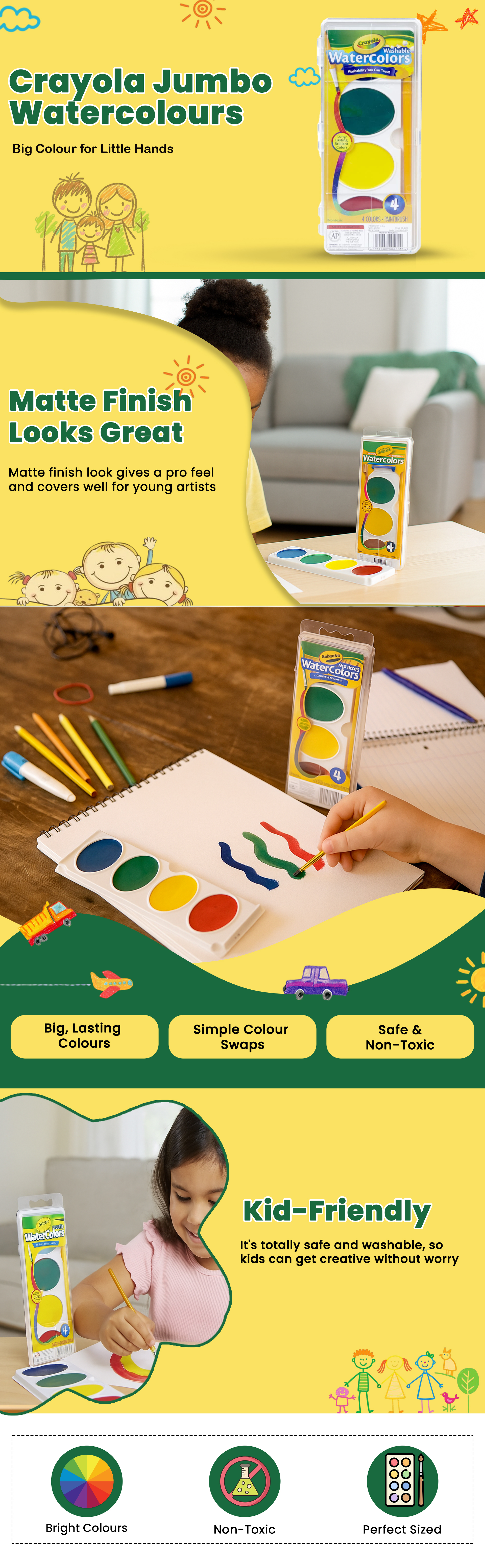 كرايولا ألوان مائية قابلة للغسل جامبو – 4 درجات، للجنسين، 3-4 سنوات | متجر كانا