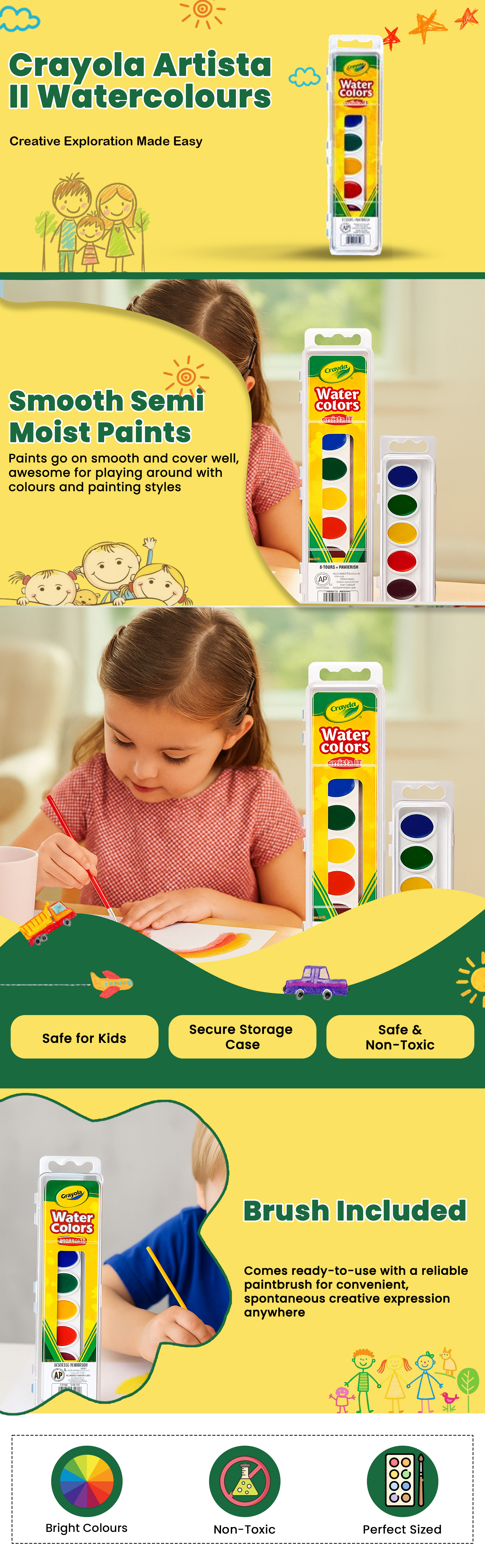 كرايولا ألوان مائية أرتيستا II بثماني درجات مع فرشاة للجنسين، 3-4 سنوات | متجر كانا