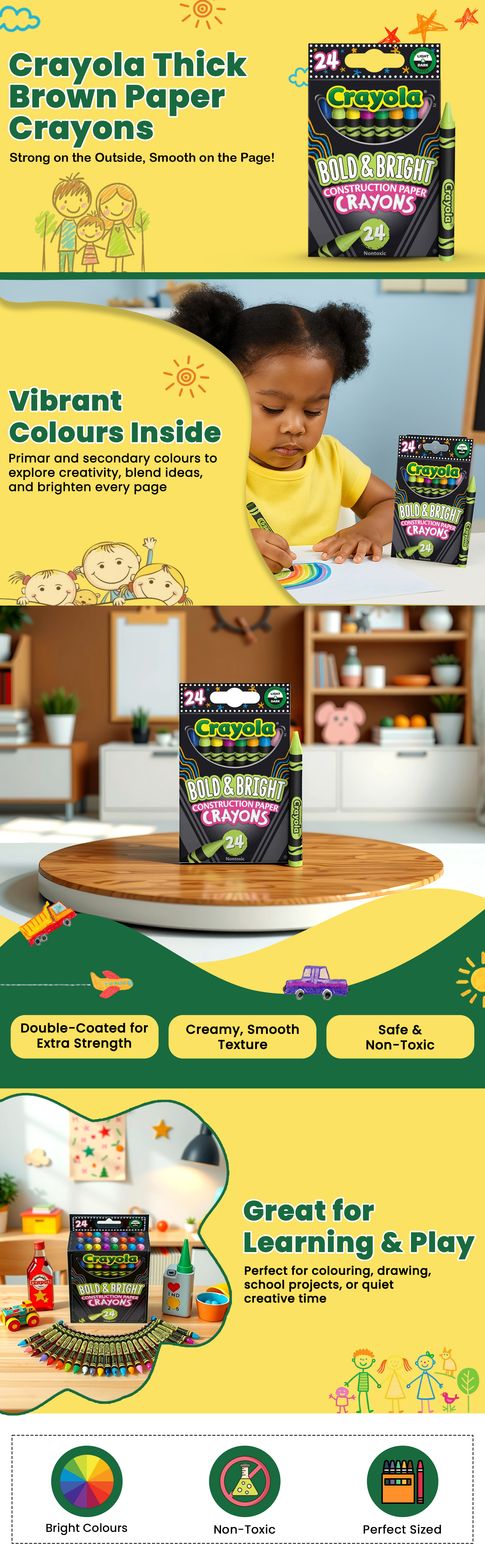 كرايولا علبة من 24 قلم شمعي للورق البني السميك بألوان زاهية للجنسين، 3-4 سنوات | متجر كانا