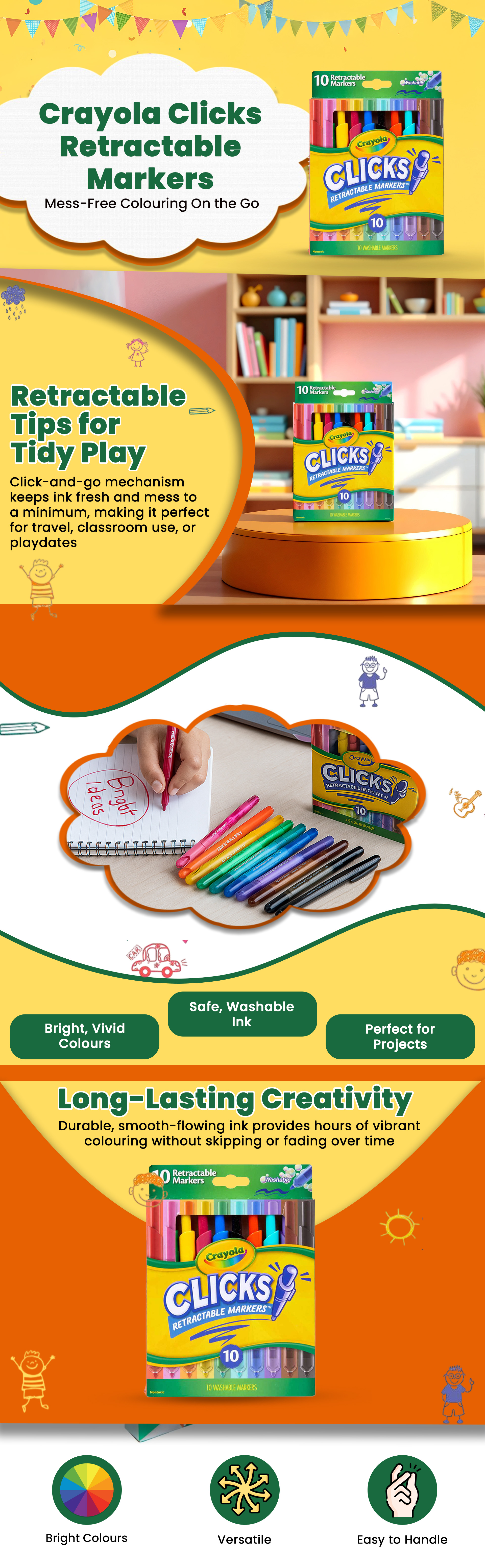 كرايولا ماركرز قابلة للسحب كليكس للجنسين، 8-10 سنوات، مجموعة من 10 | متجر كانا