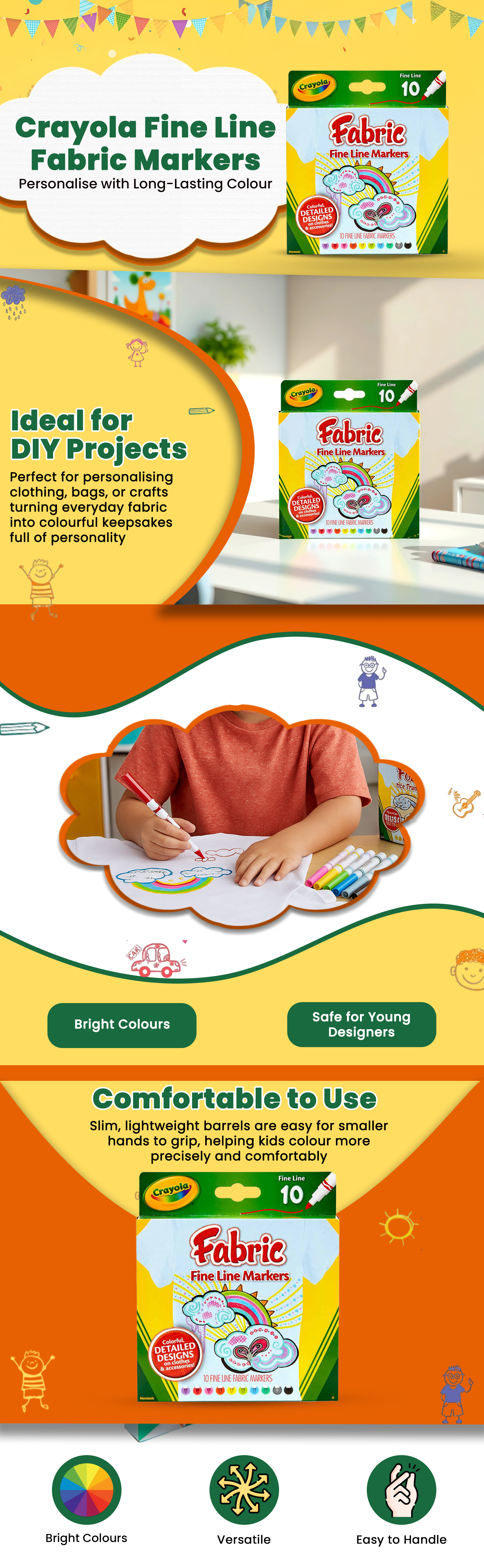 كرايولا ماركرز للأقمشة برأس رفيع للجنسين، 5-7 سنوات، مجموعة من 10 | متجر كانا
