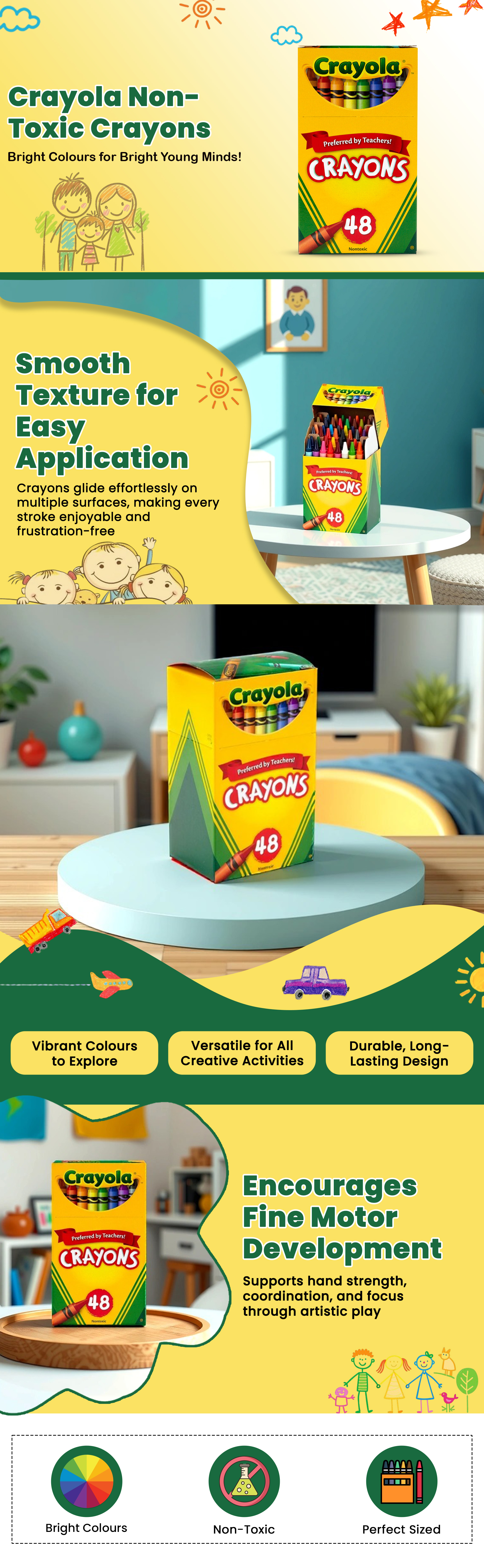 كرايولا أقلام شمعية غير سامة للجنسين، 3-4 سنوات، مجموعة من 48 | متجر كانا