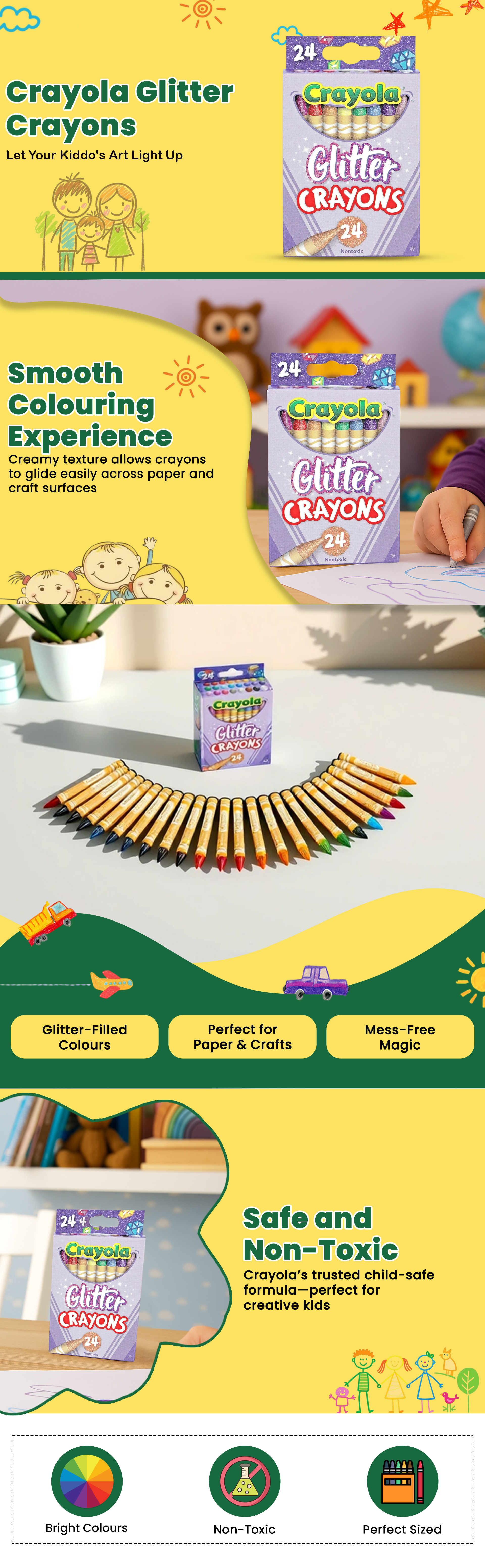 كرايولا علبة من 24 قلم شمعي جليتر غير سام للجنسين، 5-7 سنوات | متجر كانا