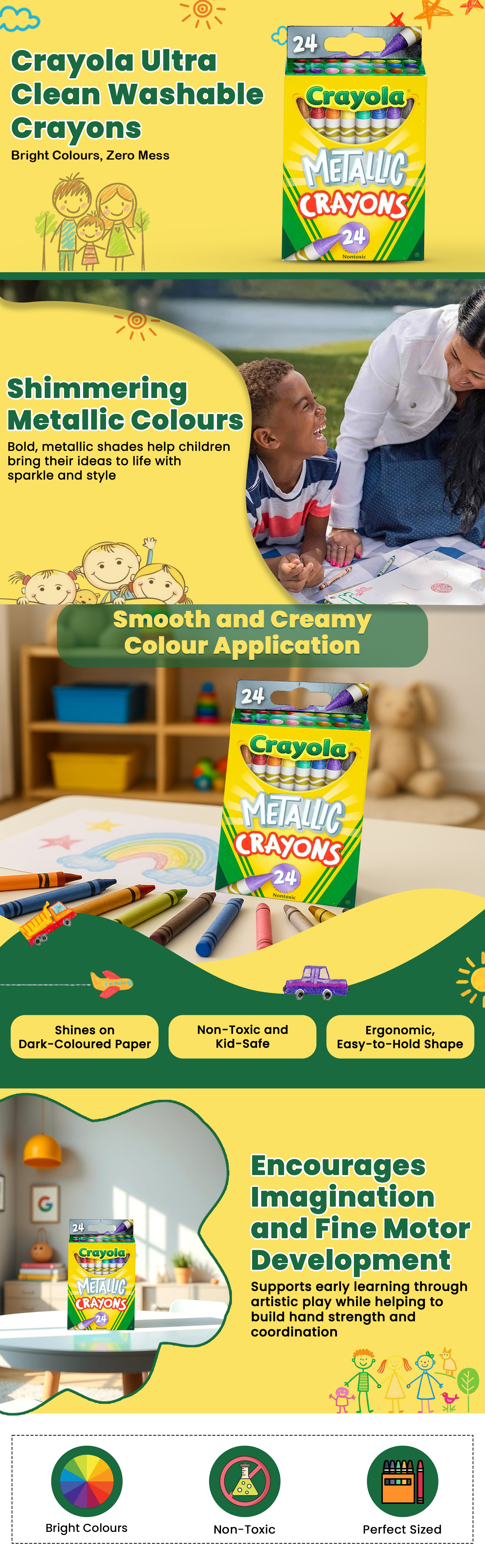 كرايولا علبة من 24 قلم شمعي معدني غير سام للجنسين، 3-4 سنوات | متجر كانا