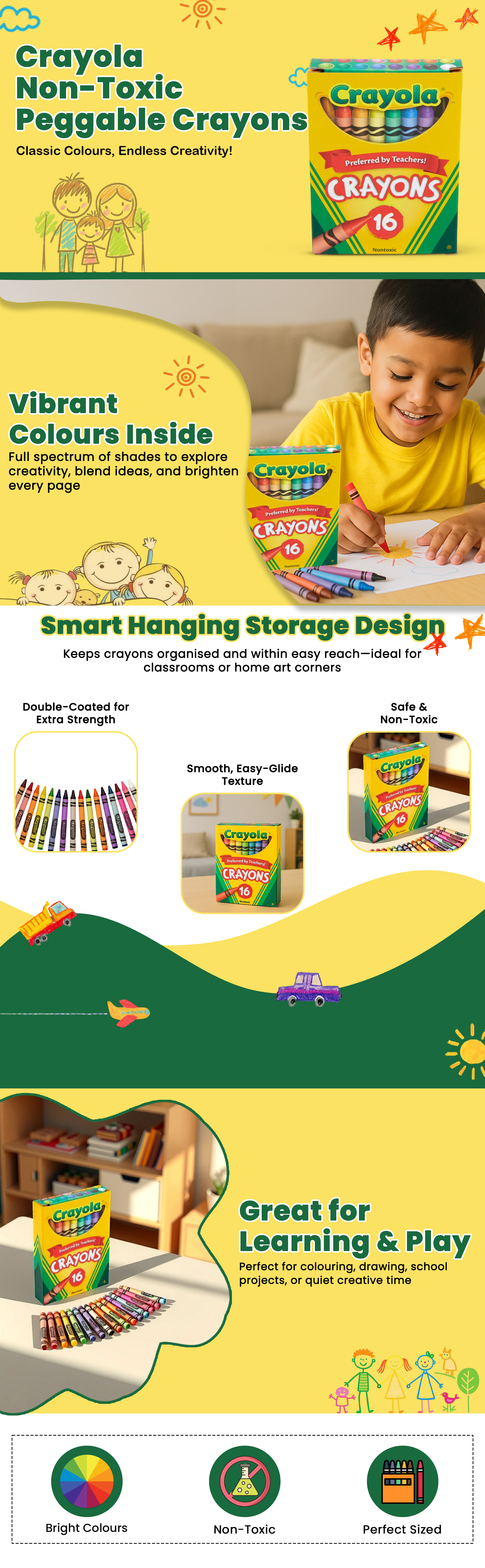 كرايولا علبة من 16 قلم شمعي غير سام قابل للتعليق للجنسين، 3-4 سنوات | متجر كانا