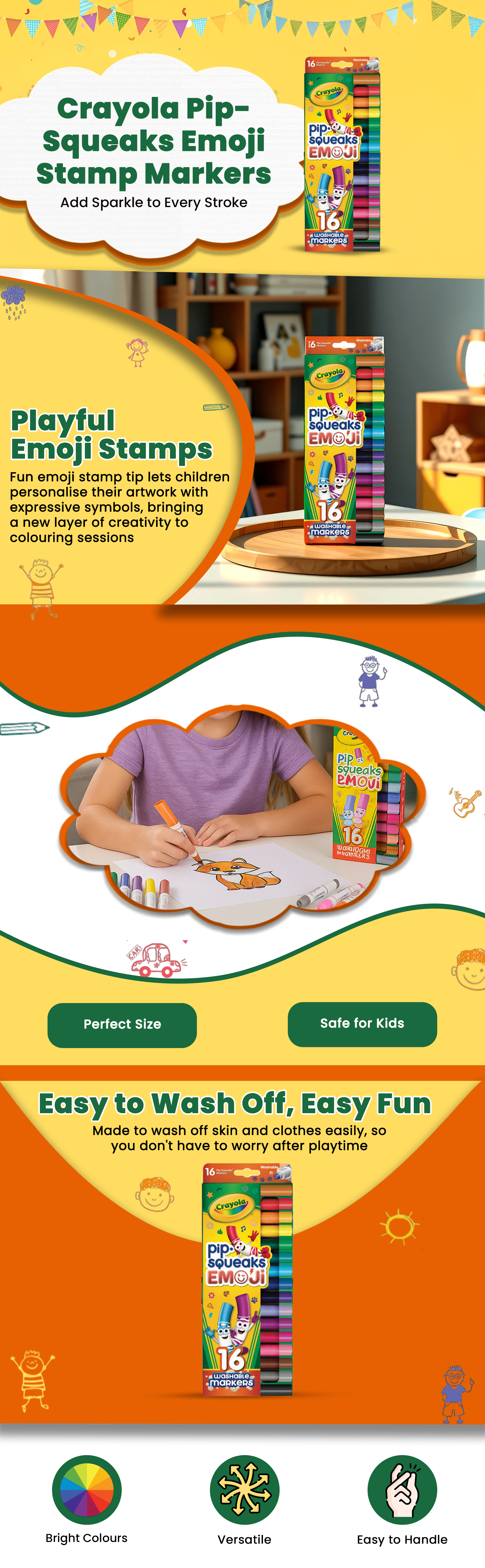 كرايولا بيب سويكس ماركرز طابع إيموجي للجنسين، 3-4 سنوات، مجموعة من 16 | متجر كانا