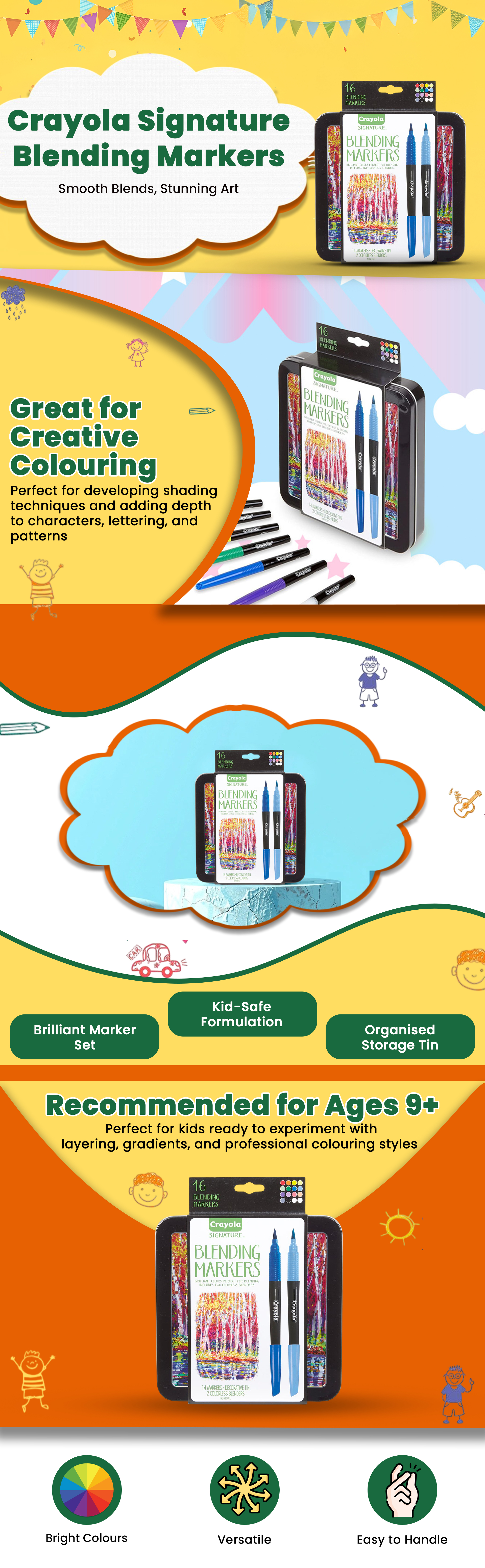 كرايولا أقلام تعليم دمج سيغنتشر مع علبة قصدير – 16 قلم، للجنسين، 8-10 سنوات | متجر كانا