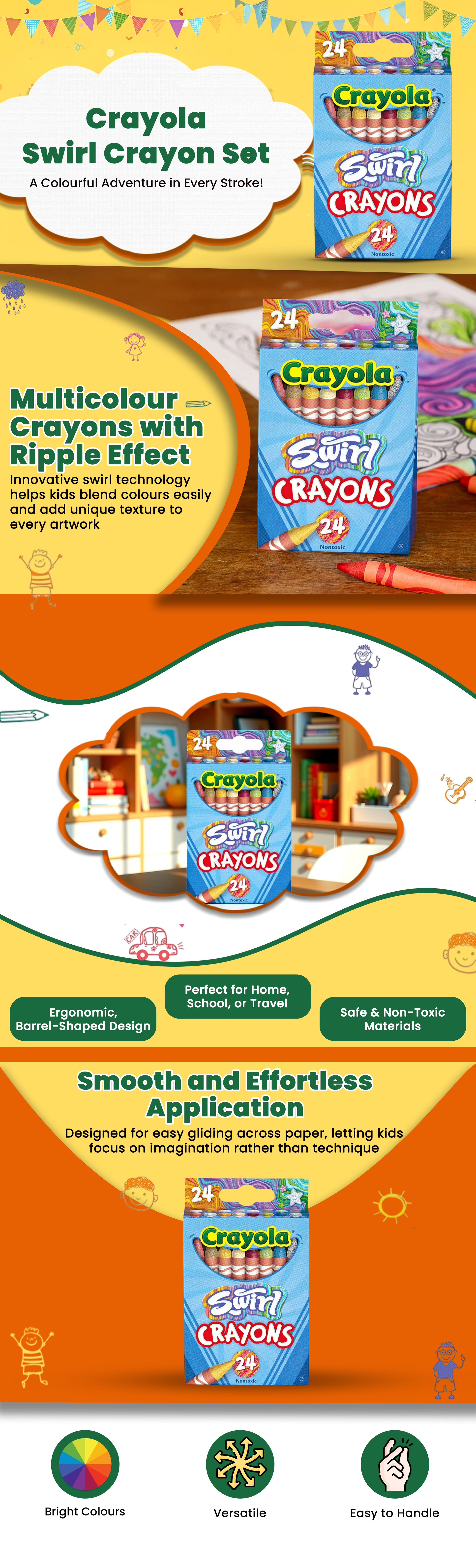كرايولا أقلام تلوين سوايرل للجنسين، 3-4 سنوات، مجموعة من 24 | متجر كانا