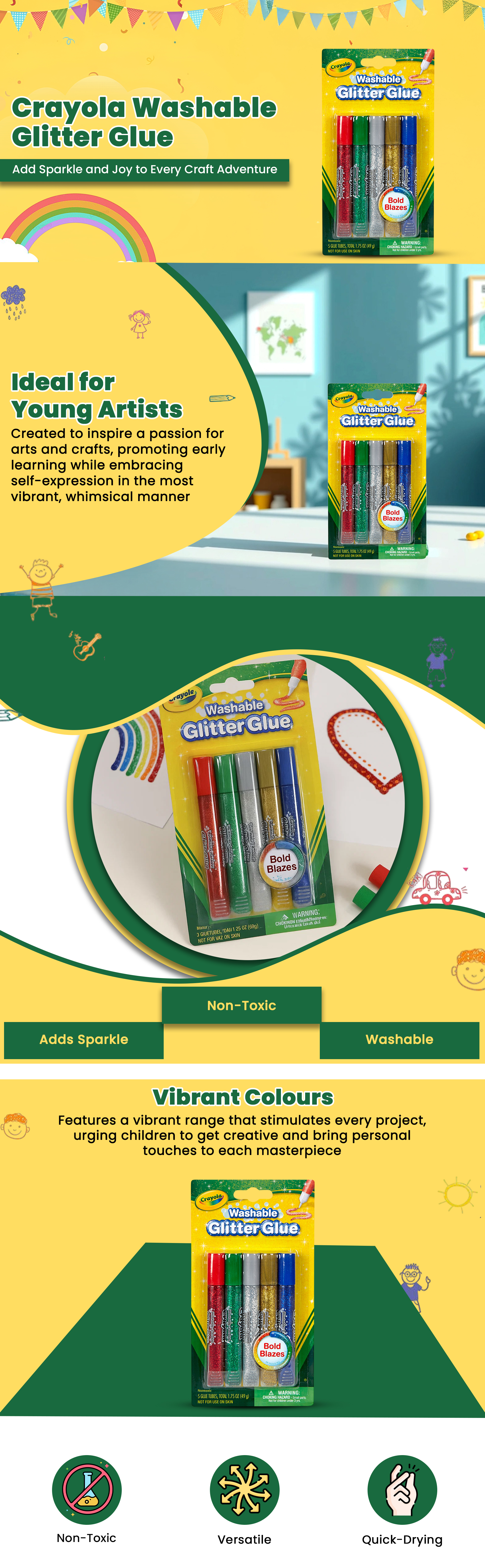 كرايولا غراء جليتر قابل للغسل للجنسين، 3-4 سنوات، مجموعة من 5 | متجر كانا