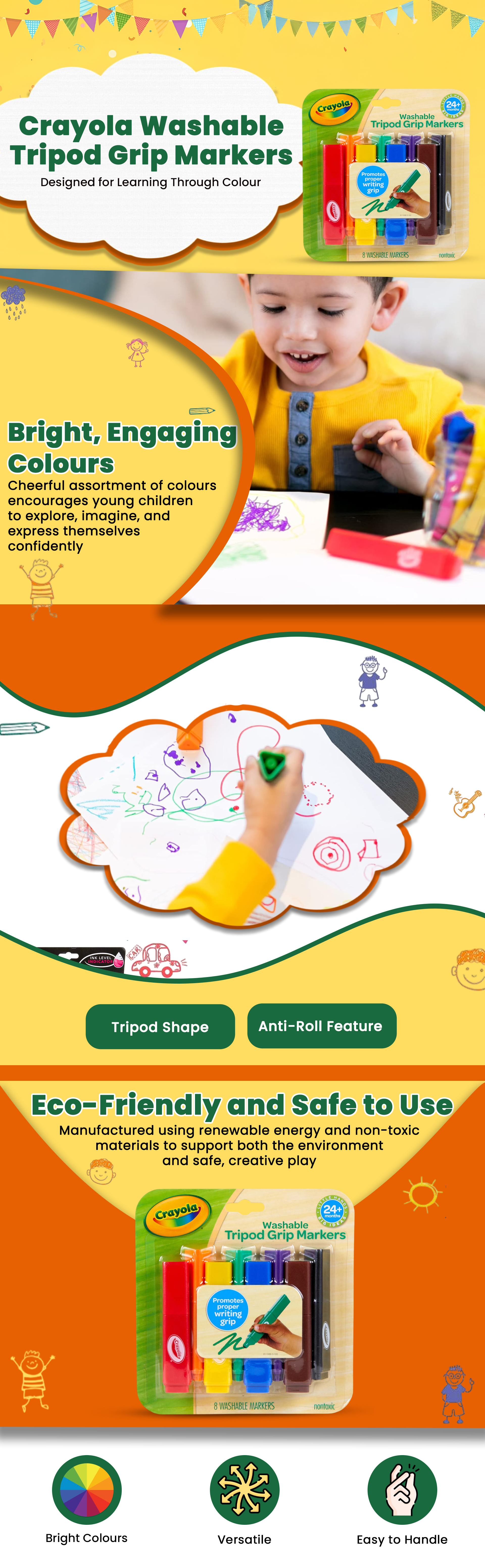 كرايولا أقلام تعليمية قابلة للغسل مع قبضة ثلاثية للأصابع للجنسين، 3-4 سنوات، مجموعة من 8 | متجر كانا