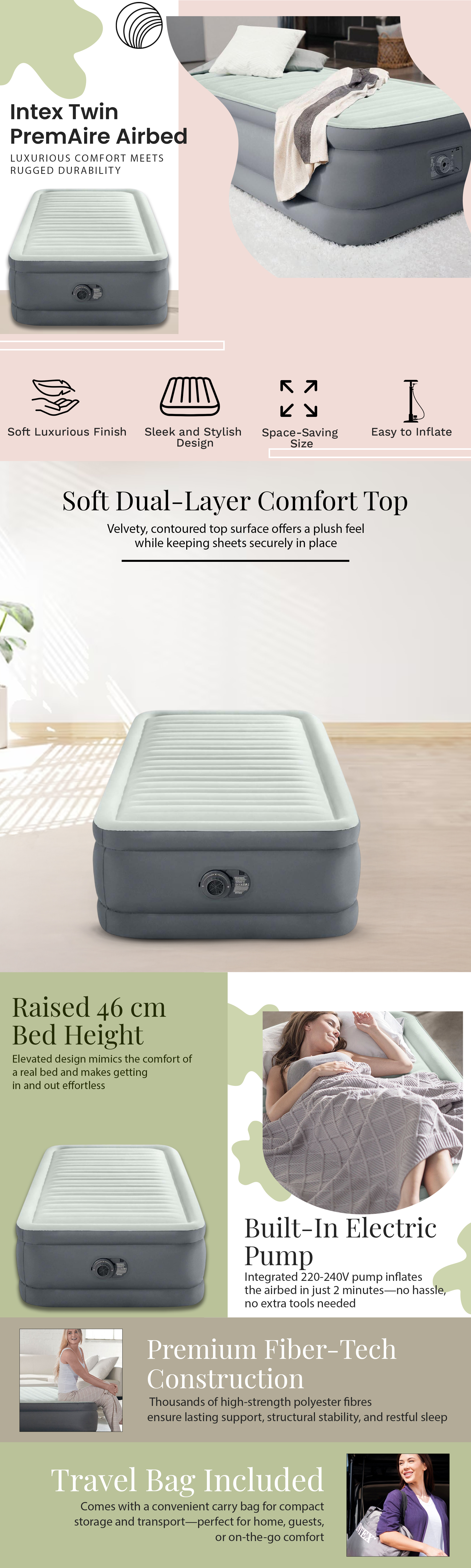 إنتكس سرير هوائي توين بريما إير بارتفاع مرتفع مع مضخة مدمجة للجنسين | متجر كانا