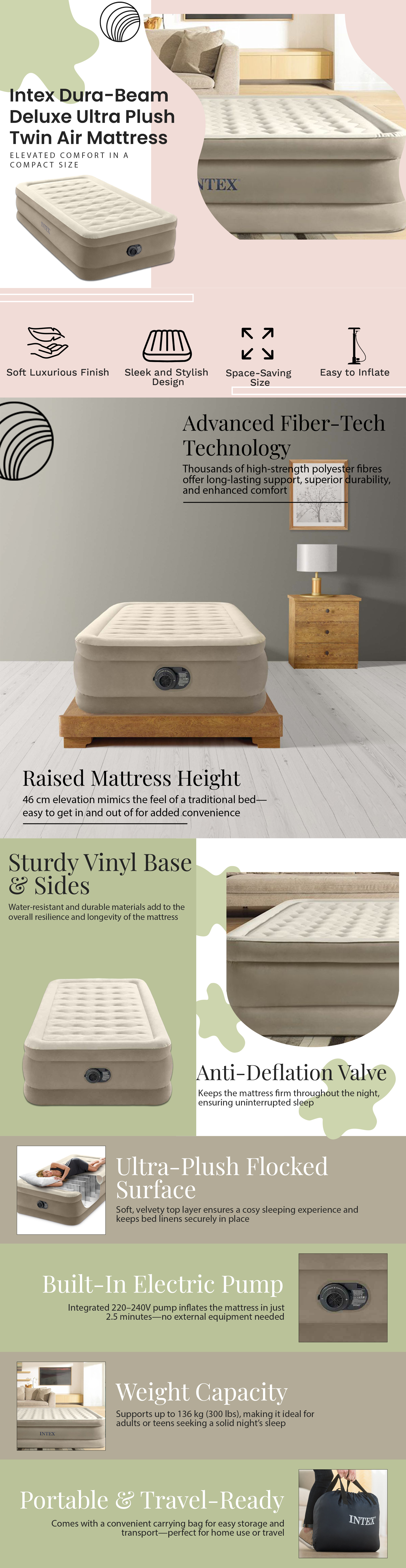 إنتكس مرتبة هوائية توين فاخرة جداً بتقنية فايبر تك، للجنسين | متجر كانا