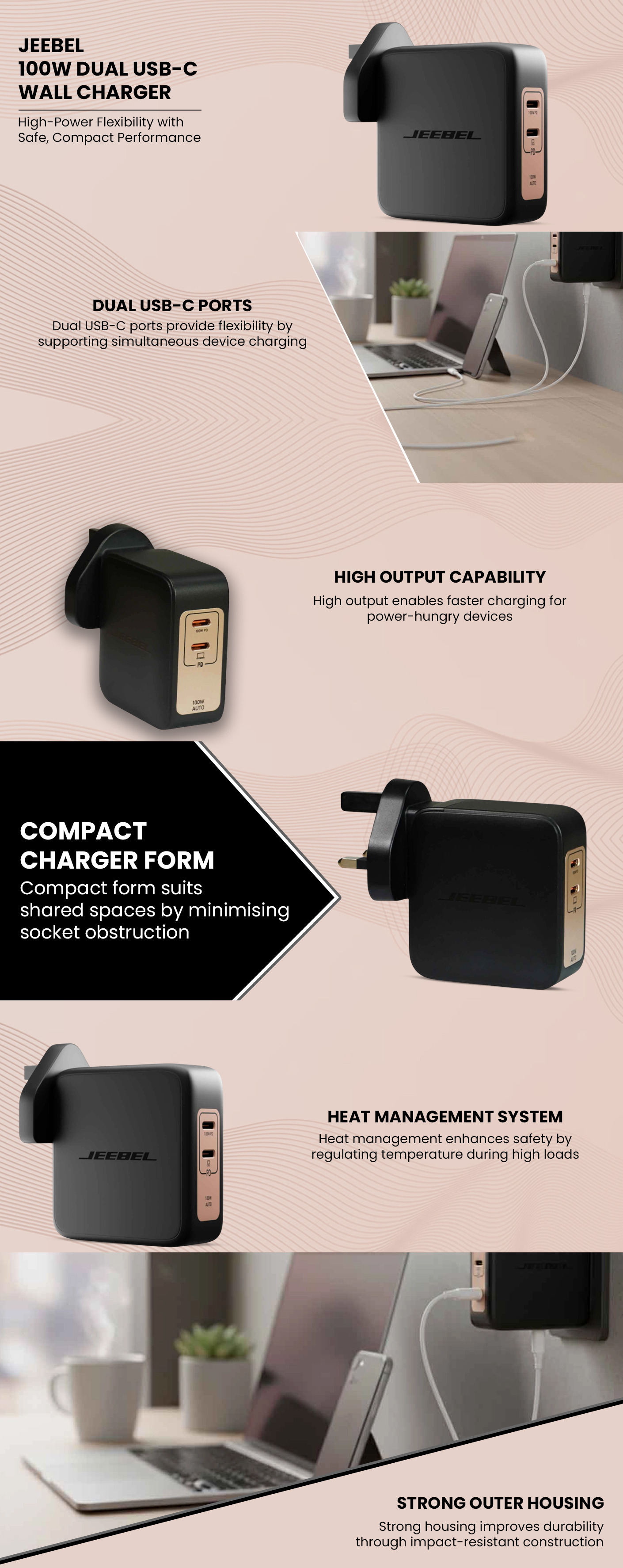 جيبل شاحن حائط 100 واط PD بمنفذي USB-C | متجر كانا