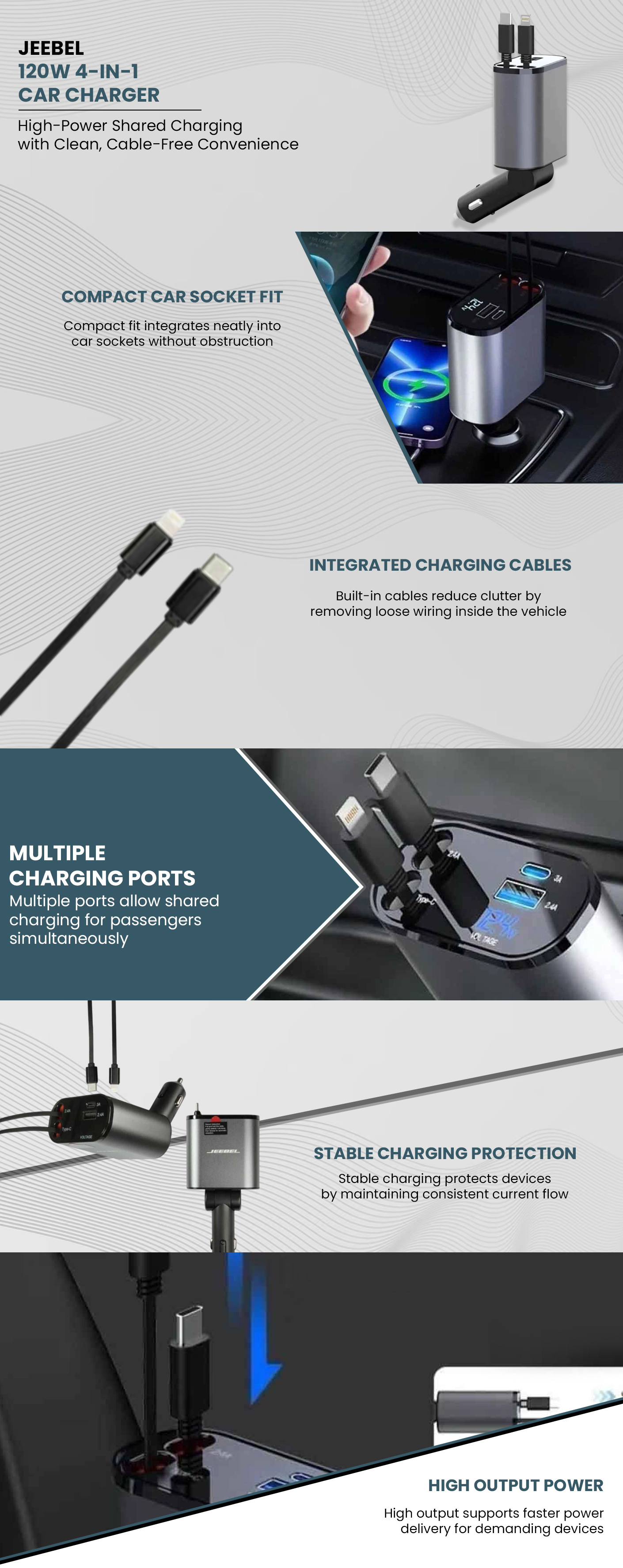 جيبل شاحن سيارة 120 واط 4-في-1 مع منافذ لايتنينغ وUSB-C باللون الرمادي | متجر كانا