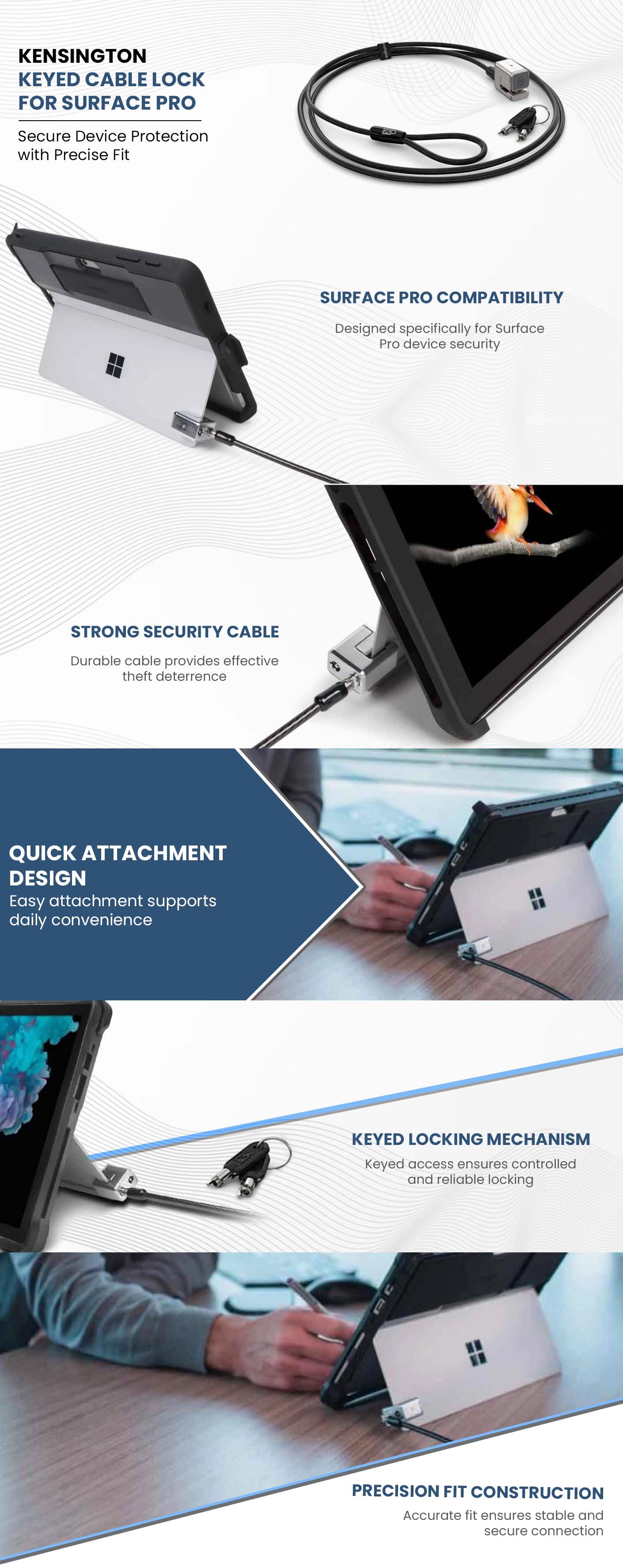 كينسينغتون قفل كابل بمفتاح لأجهزة سيرفس برو من 3 إلى 8 | متجر كانا