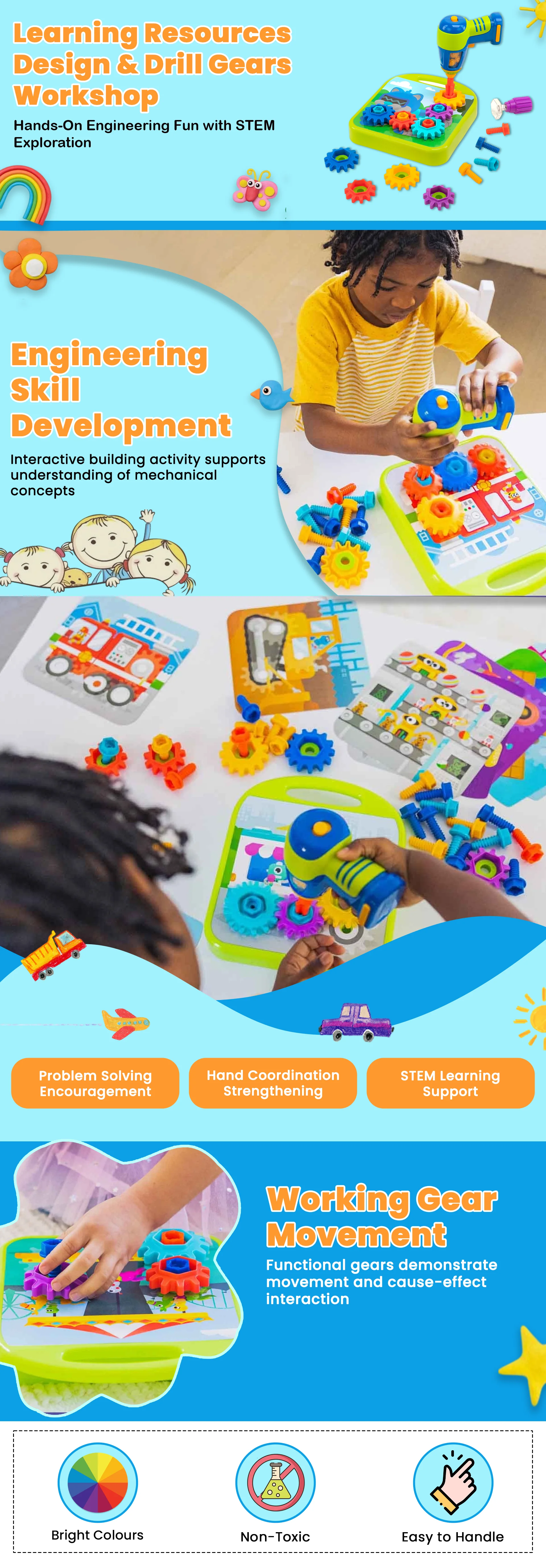ليرننغ ريسورسز ورشة التروس تصميم وحفر للجنسين، 3-4 سنوات | متجر كانا