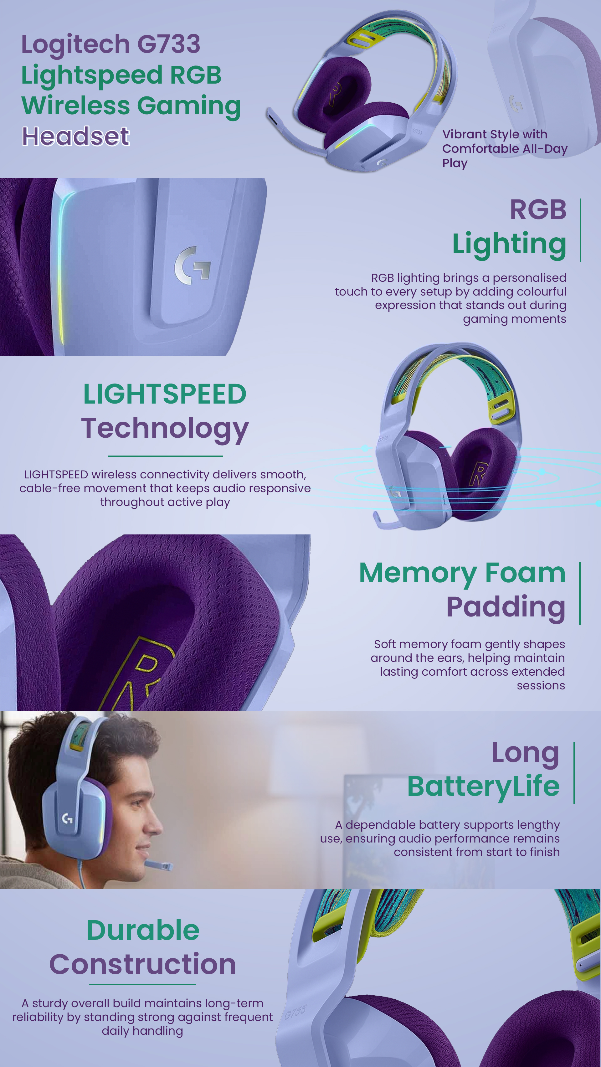 لوجيتك سماعة ألعاب لاسلكية جي733 بإضاءة آر جي بي وتقنية لايت سبيد | متجر كانا