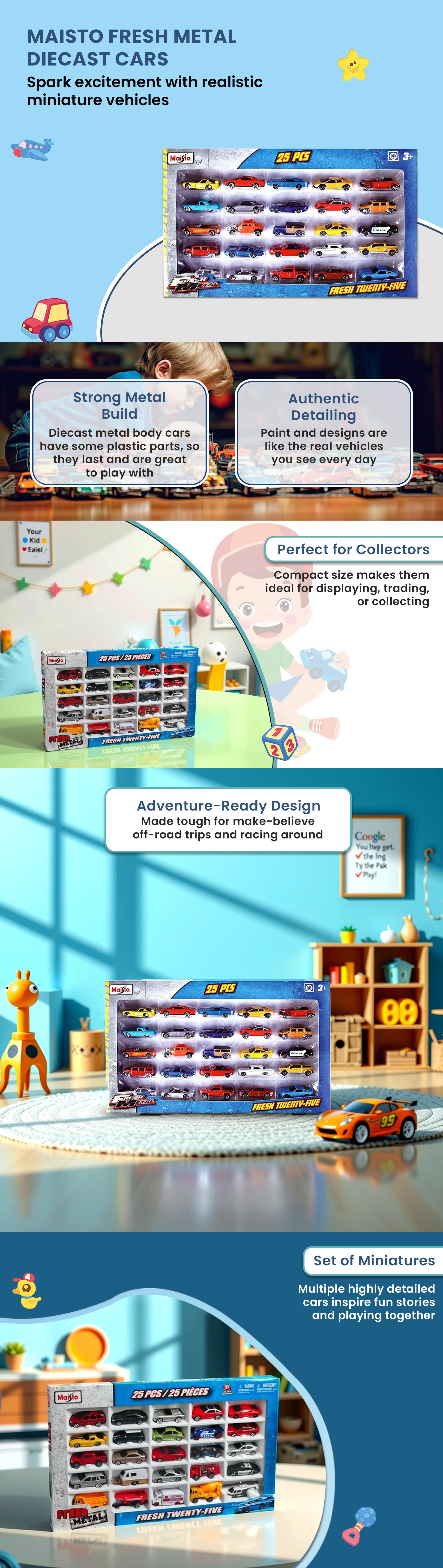 مايستو سيارات دايكاست فريش ميتال متنوعة بحجم 3 إنش للأولاد، 3-4 سنوات، مجموعة من 25 | متجر كانا