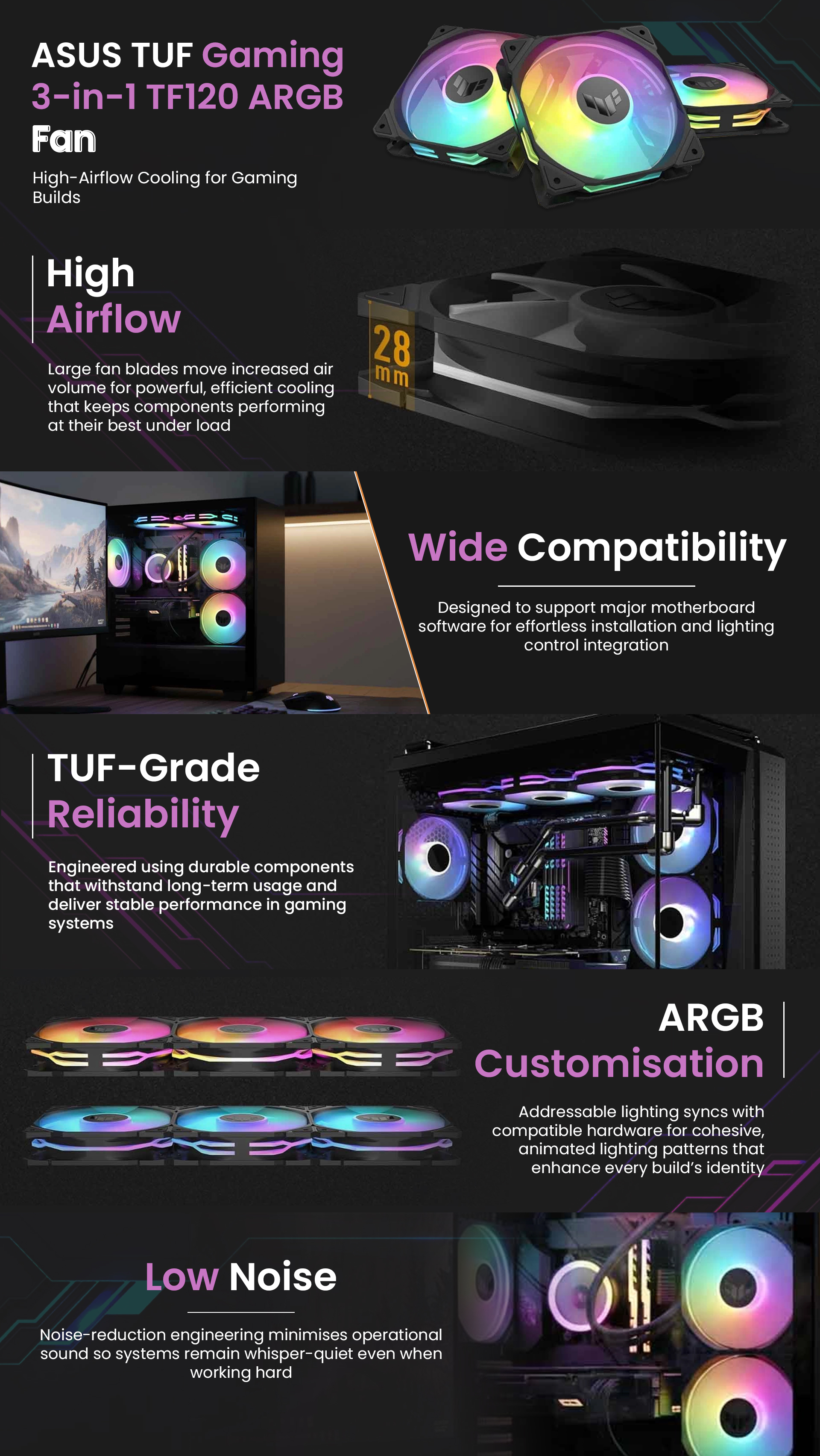 Asus Black TUF Gaming 3-In-1 TR120 ARGB Fan