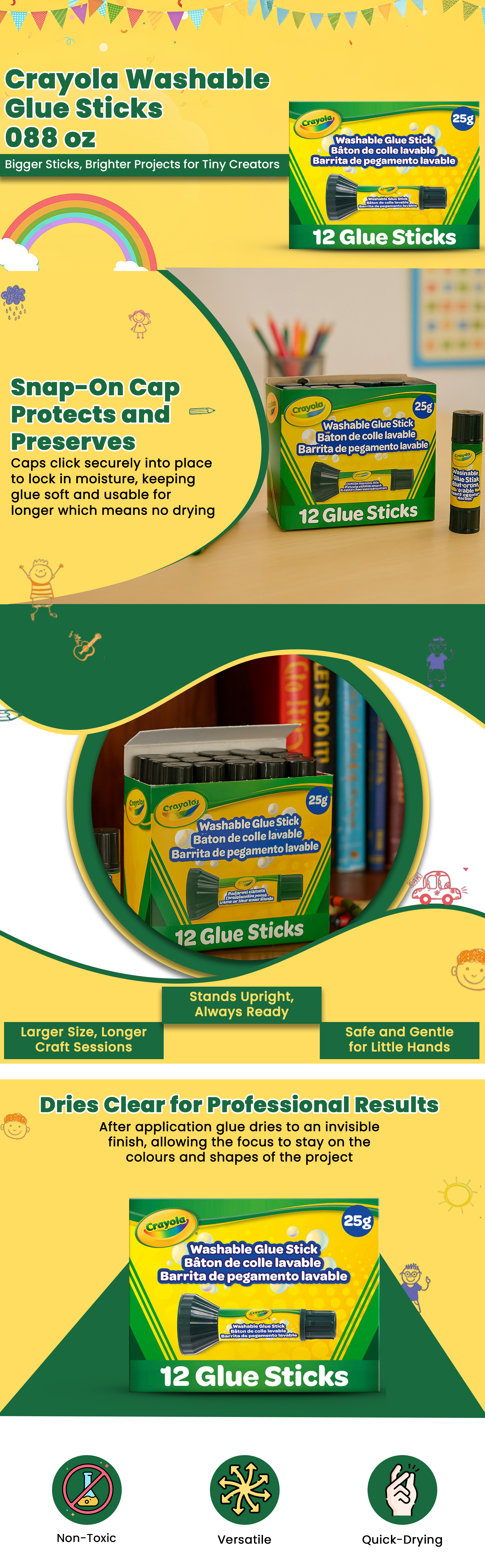 Crayola 0.88 oz. Washable Glue Sticks Unisex, 3-4 Years, Pack of 12|The Kanaa