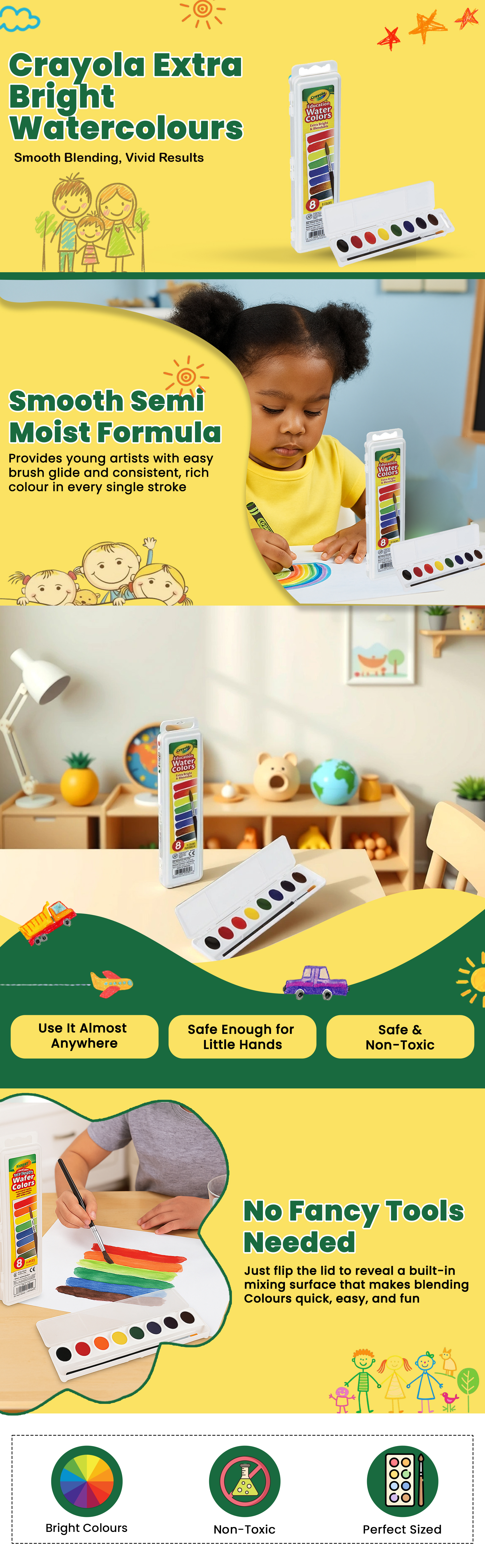 Crayola 8-Shades Extra Bright & Blendable Watercolours Unisex, 5-7 Years|The Kanaa