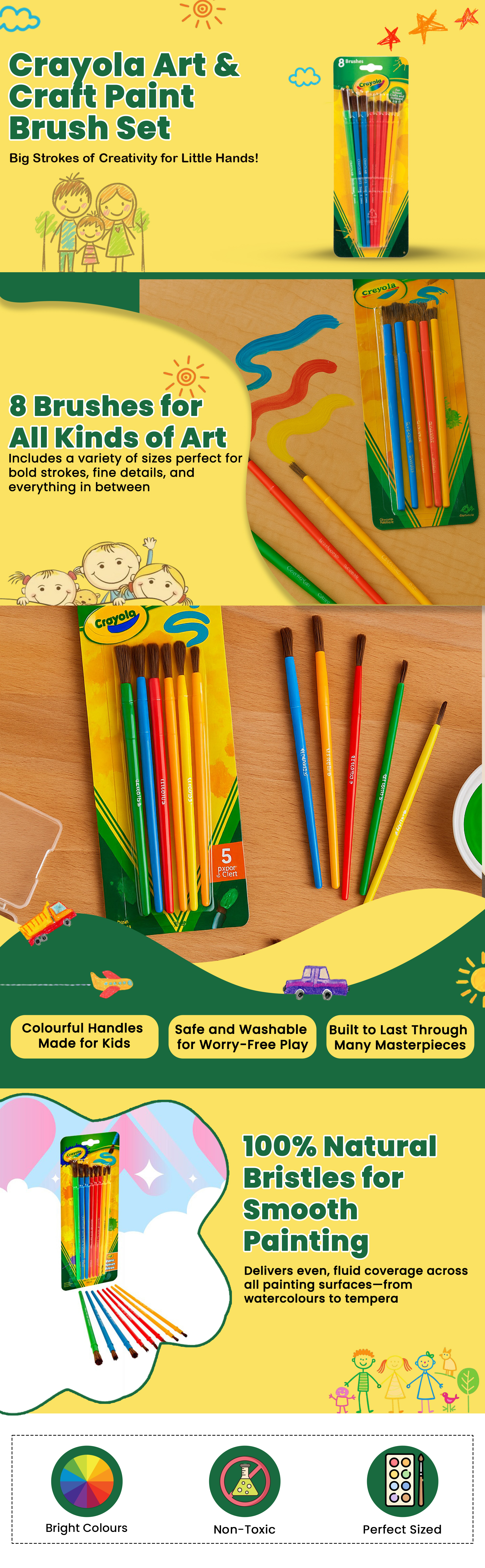 Crayola Art & Craft Paint Brush Set Unisex, 3-4 Years, Pack of 8|The Kanaa