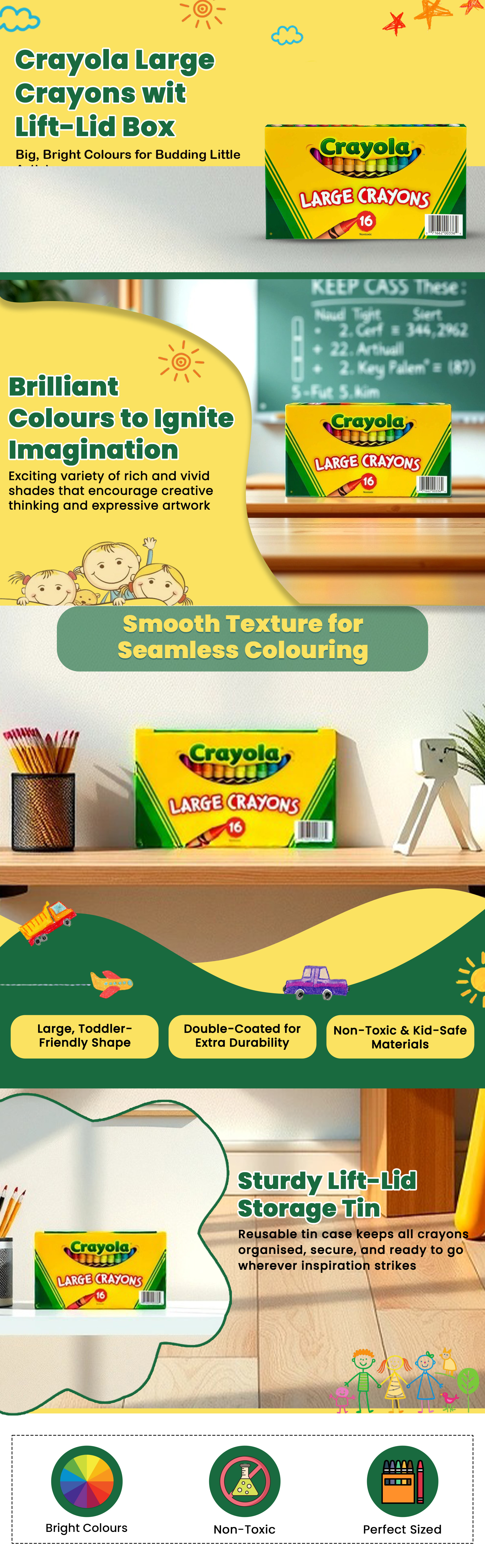 Crayola Large Crayons in Lift Lid Box Unisex, 3-4 Years, Pack of 16|The Kanaa