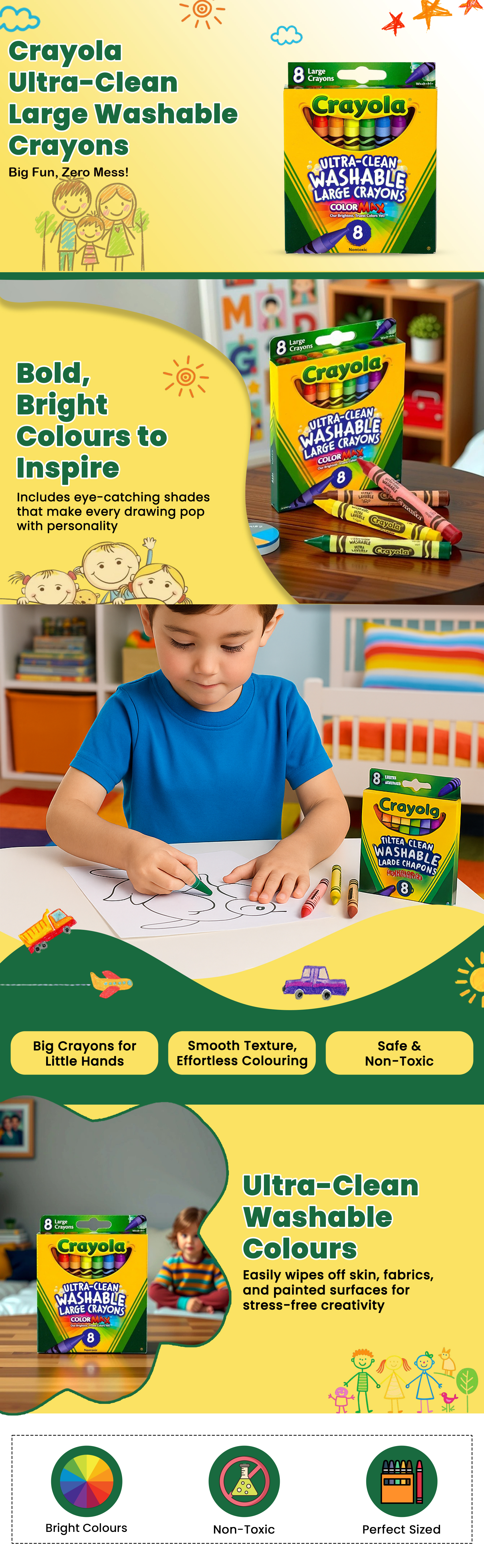 Crayola Large Ultra-Clean Washable Crayons Unisex, 3-4 Years, Pack of 8|The Kanaa