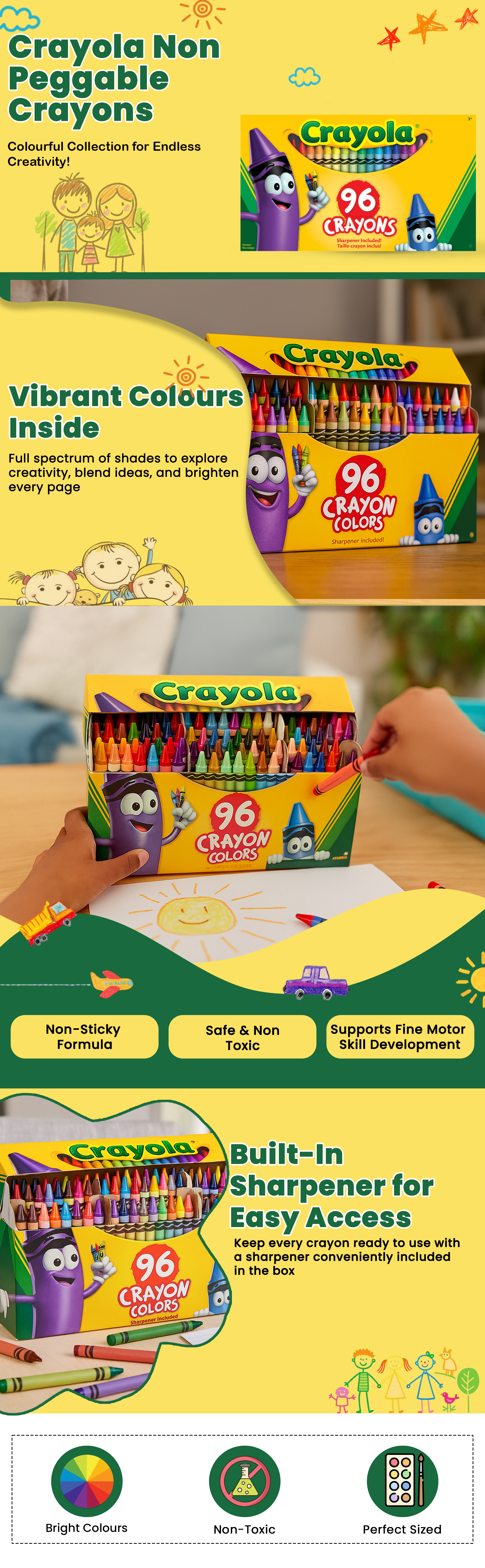 Crayola Non-Peggable Crayon Colors Unisex, 3-4 Years, Pack of 96|The Kanaa