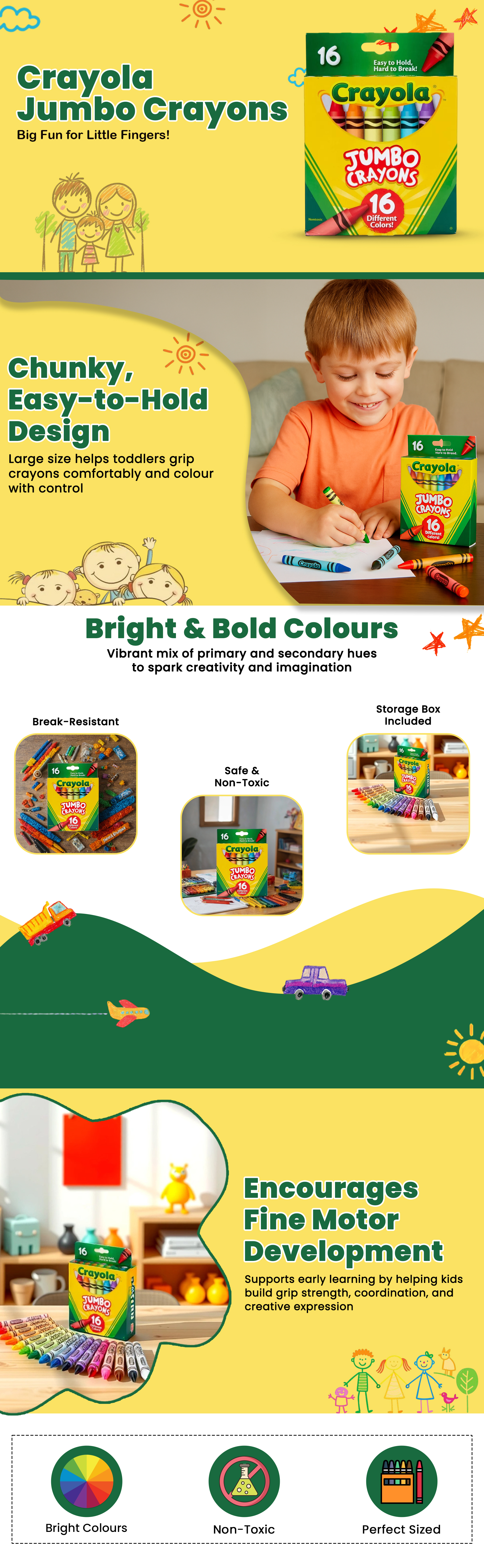 Crayola Non-Toxic Jumbo Crayons Unisex, 3-4 Years, Pack of 16|The Kanaa