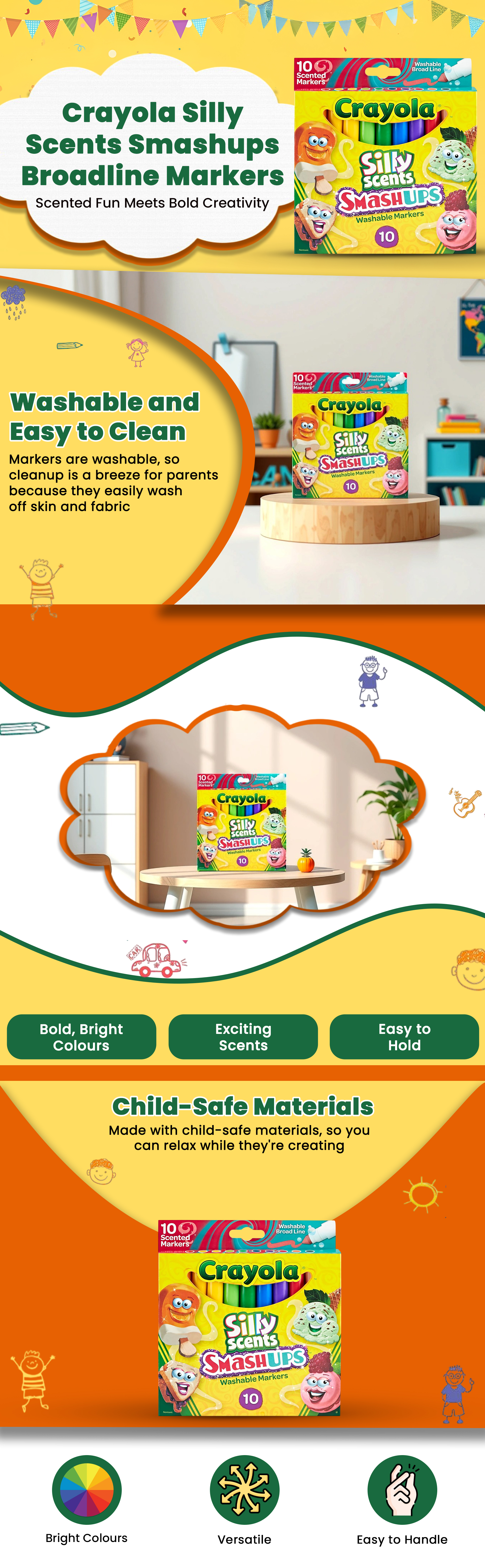 Crayola Silly Scents Smashups Broadline Markers Unisex, 3-4 Years, Pack of 10|The Kanaa
