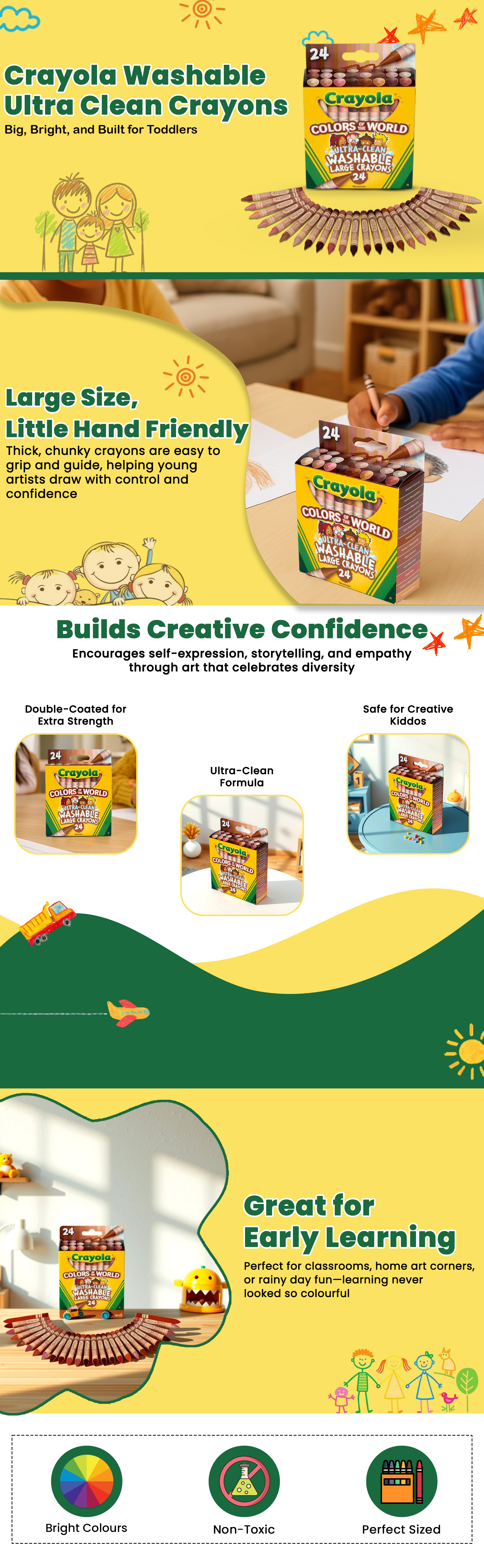 Crayola Ultra-Clean Washable Large Crayons Unisex, 3-4 Years, Pack of 24|The Kanaa