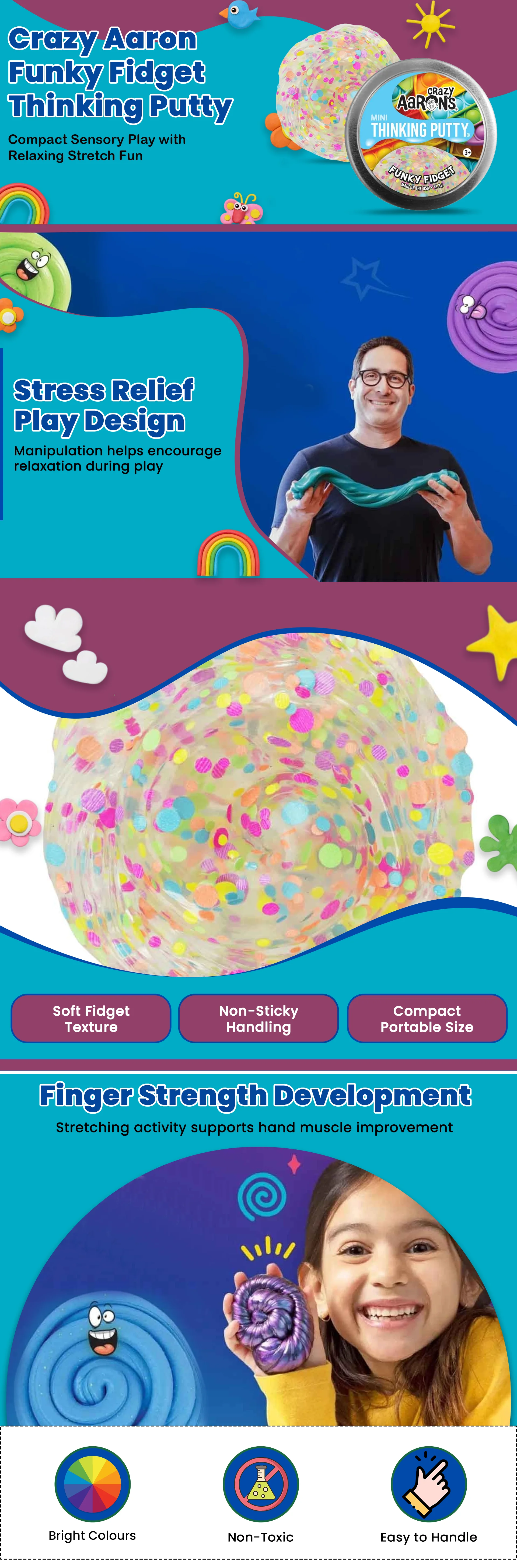 Crazy Aaron 2" Funky Fidget Mini Thinking Putty Unisex, 3-4 Years|The Kanaa