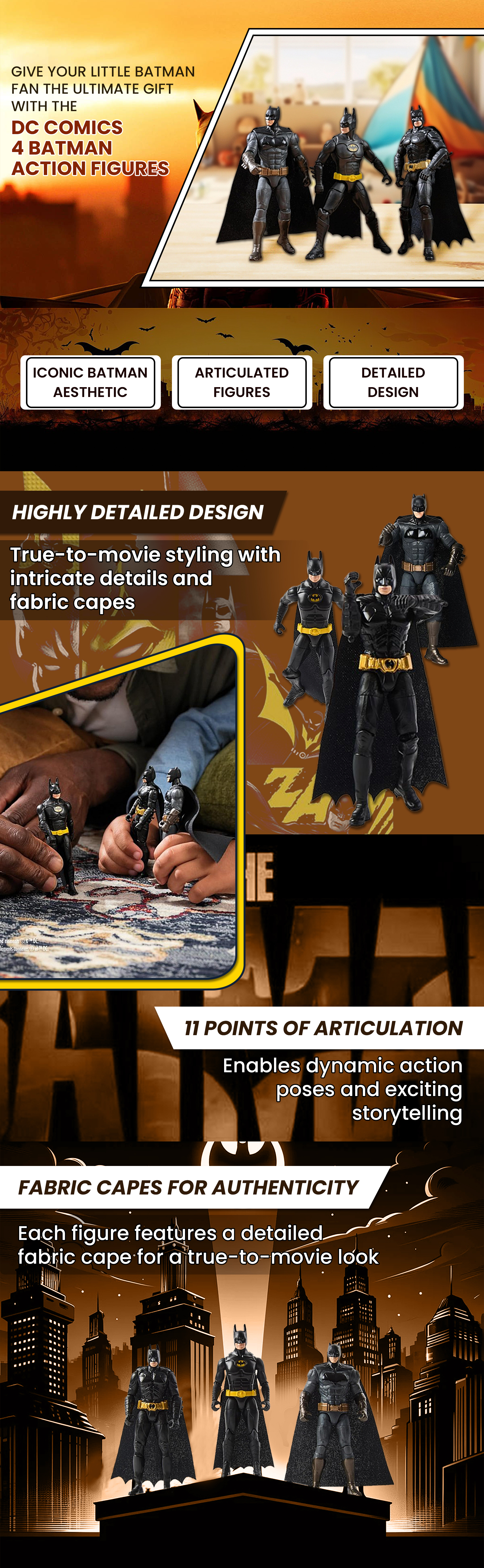 DC Comics 4″ 85th Special Edition Batman Action Figures Unisex, 3-4 Years, Pack of 3|The Kanaa