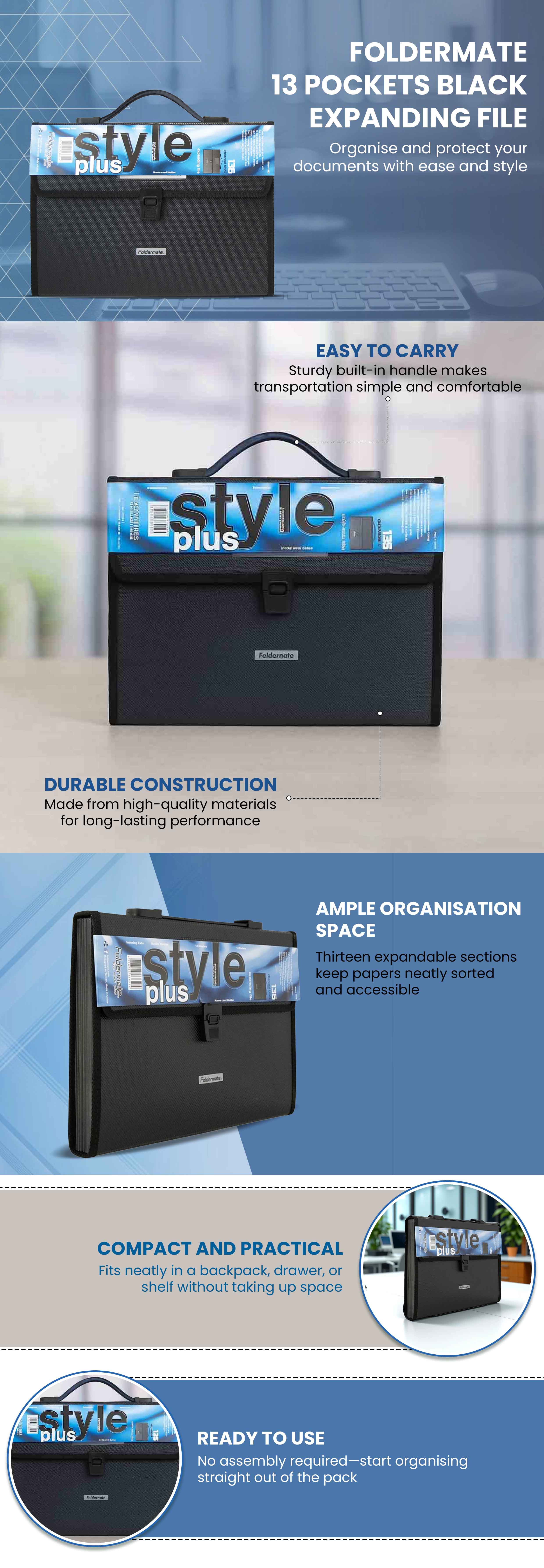 Foldermate 13 Pockets Black Expanding File|The Kanaa