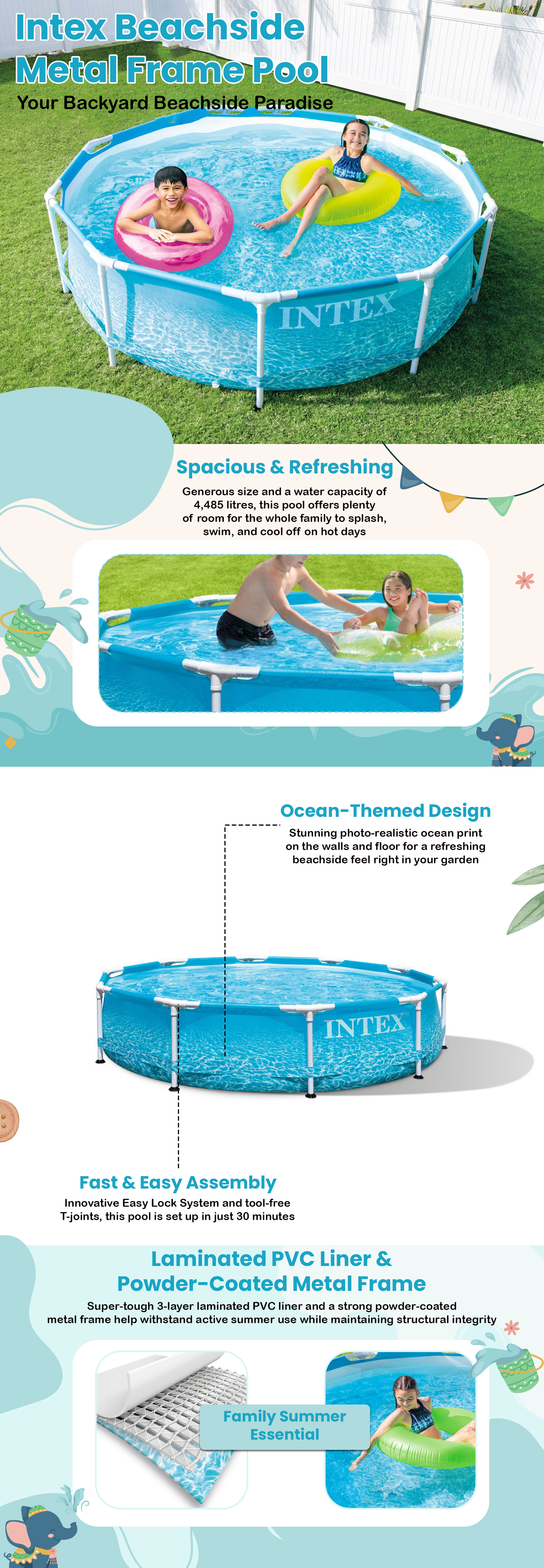 Intex 120" Beachside Metal Frame Above Ground Pool Unisex, 5-7 Years|The Kanaa