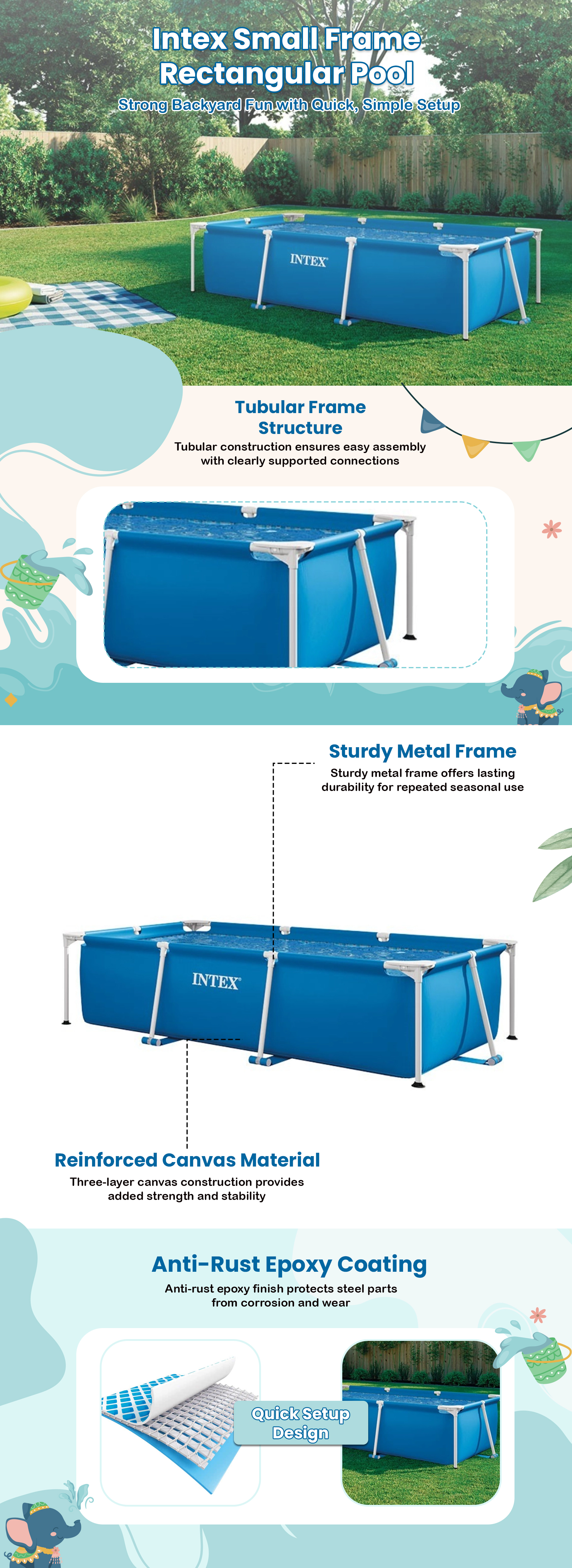 Intex 28270 Small Frame Rectangular Pool Unisex, 5-7 Years|The Kanaa
