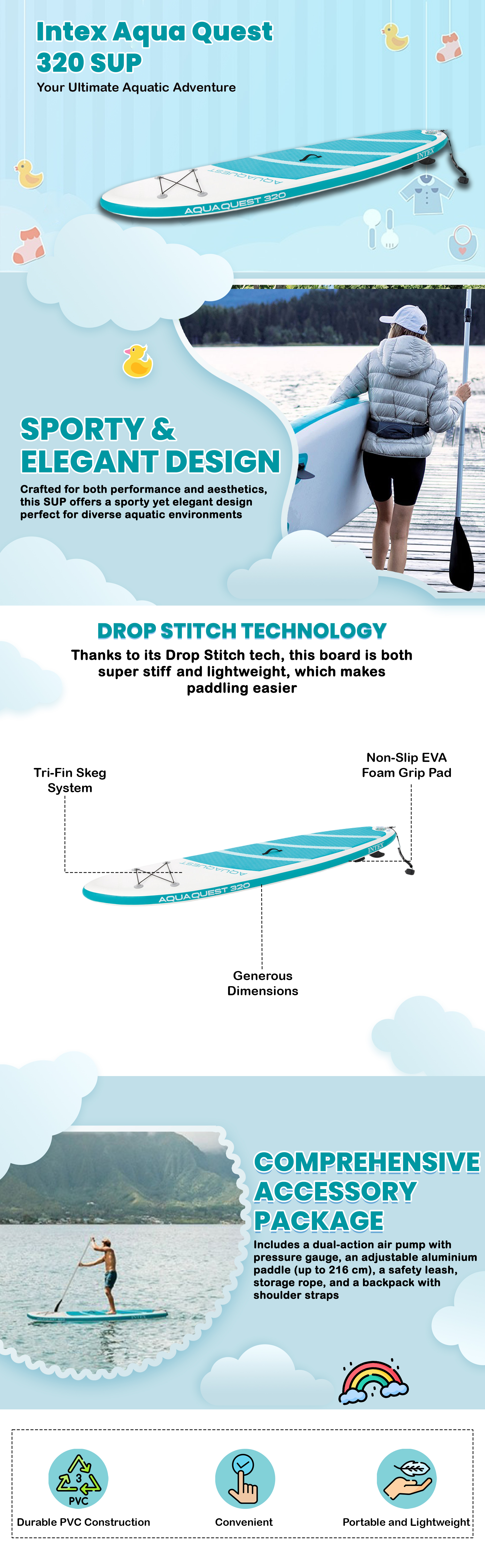 Intex Aqua Quest 320 Stand-Up Paddle Board Unisex|The Kanaa