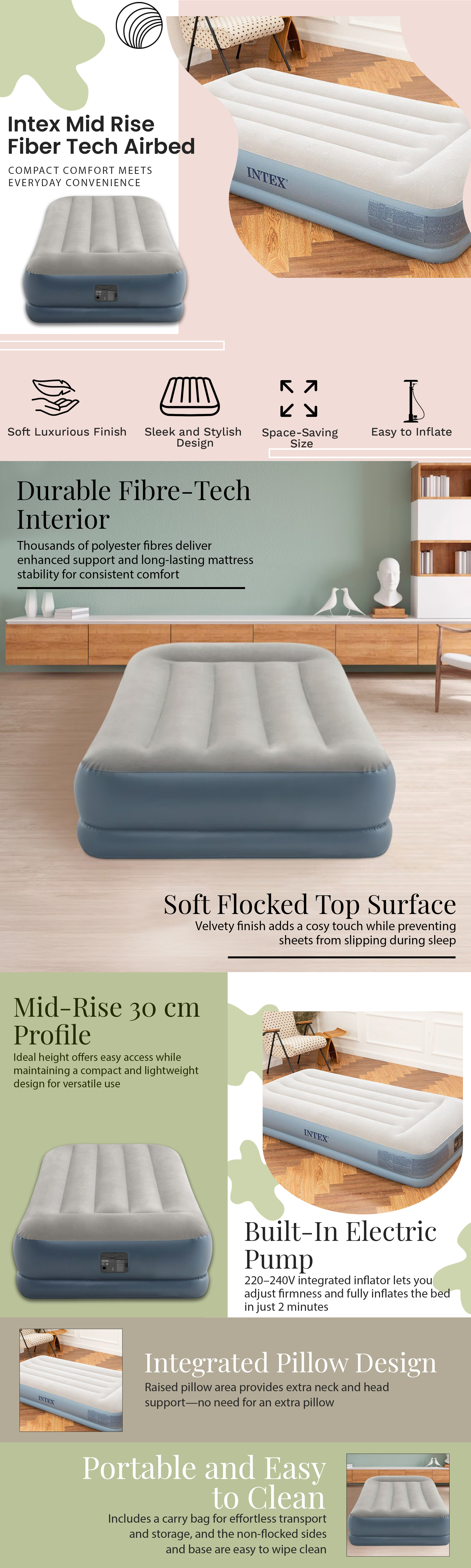Intex Dura-Beam Standard series Pillow Rest Air Mattress Unisex|The Kanaa