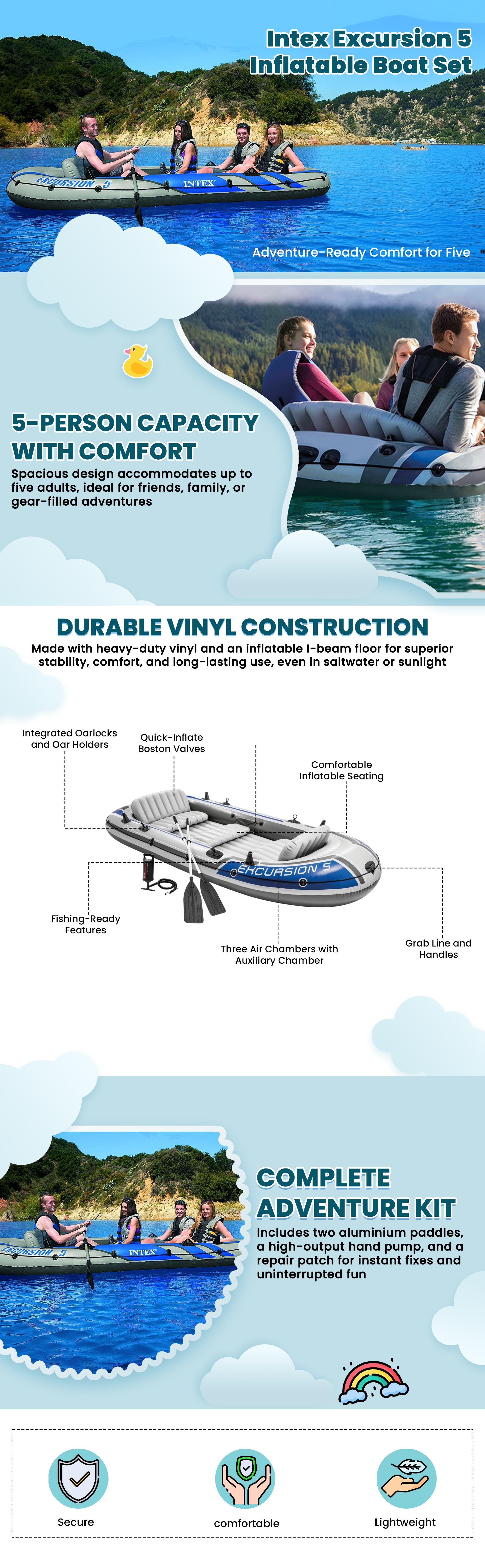 Intex Excursion 5 Inflatable Boat Set Unisex|The Kanaa