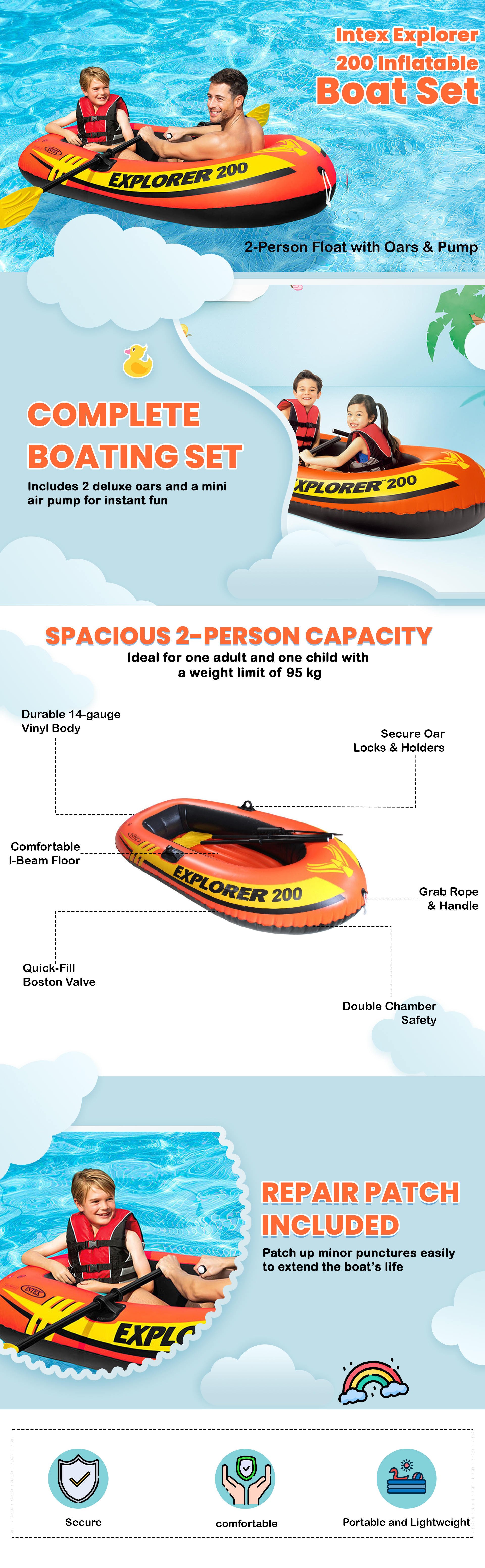 Intex Explorer 200 Boat Set Unisex, 5-7 Years|The Kanaa