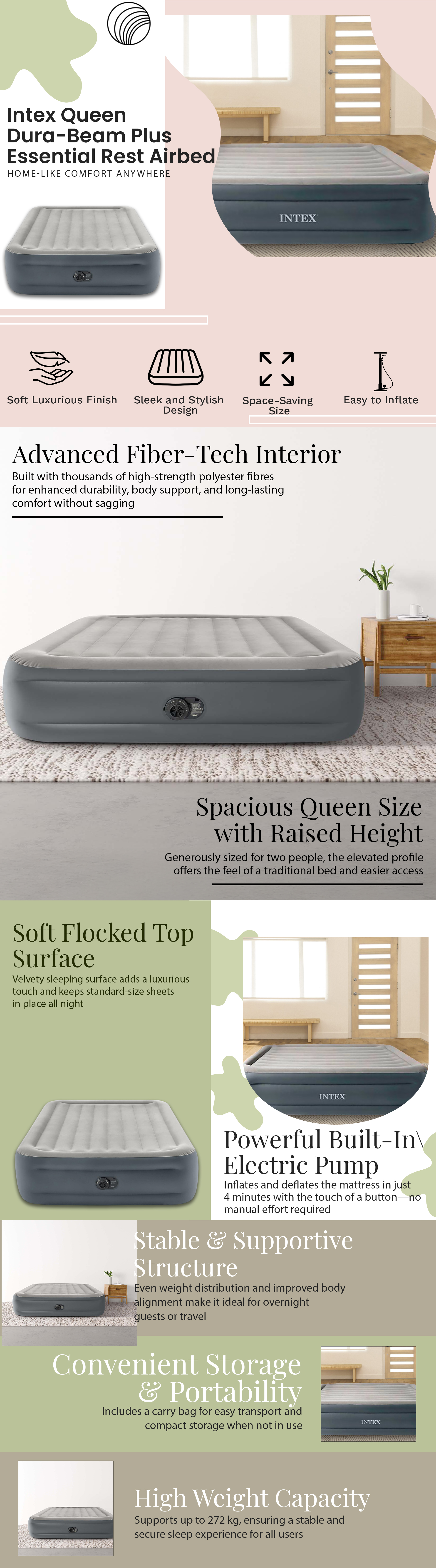 Intex Inflatable Queen Essential Rest Airbed with FiberTech Unisex|The Kanaa