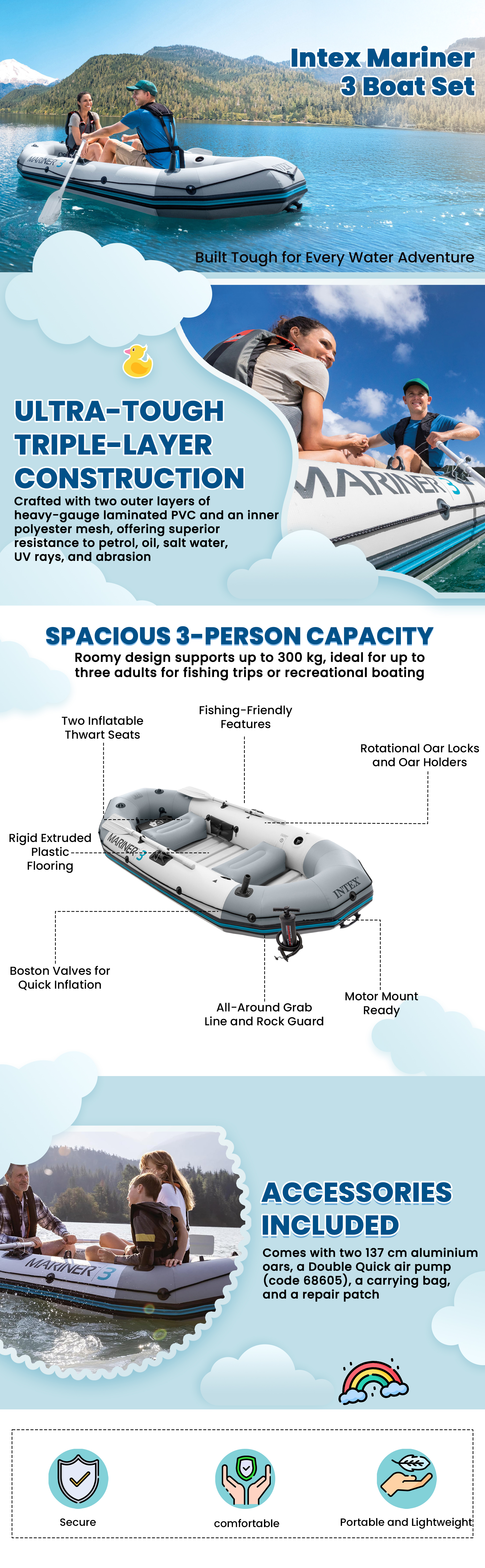 Intex Mariner 3 Boat Set Unisex, 13+ Years