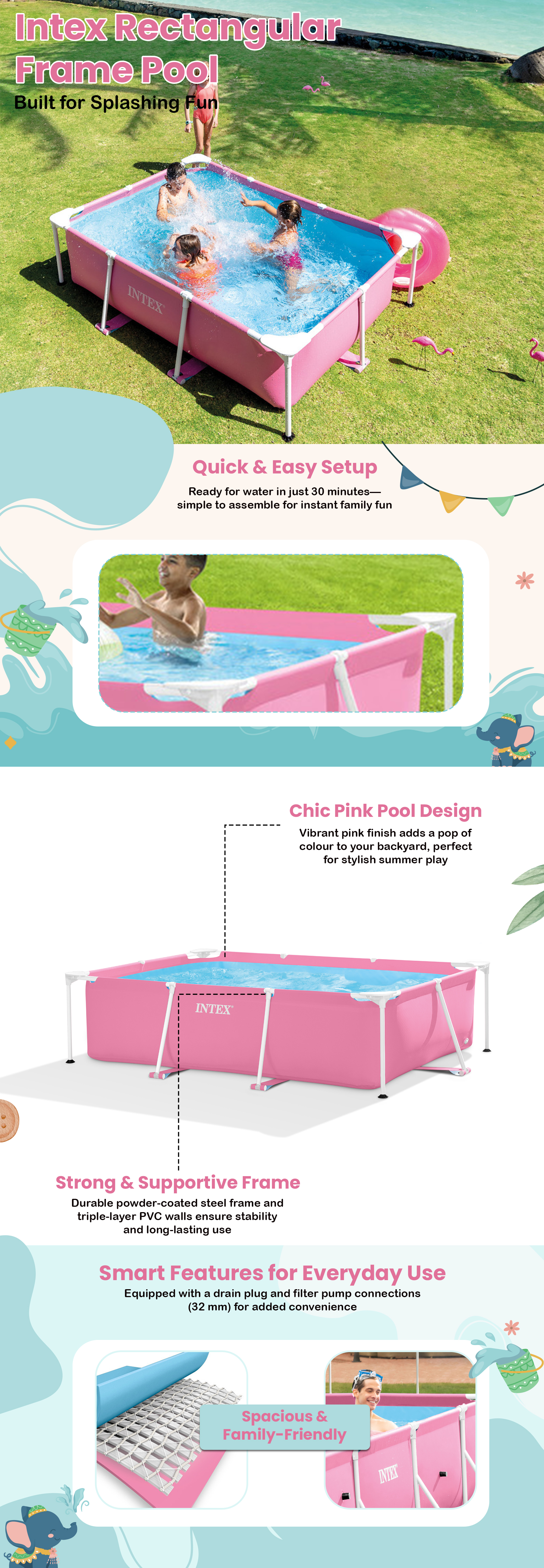 Intex Rectangular Frame Pool Unisex, 5-7 Years|The Kanaa