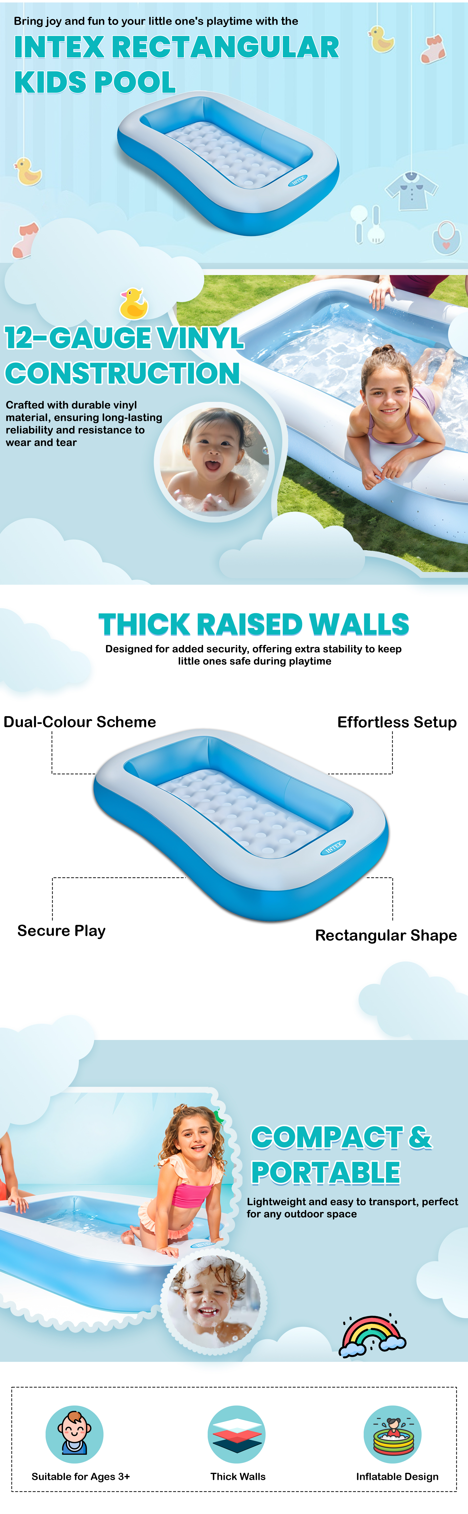 Intex Rectangular Inflatable Kids Pool Unisex, 3-4 Years|The Kanaa