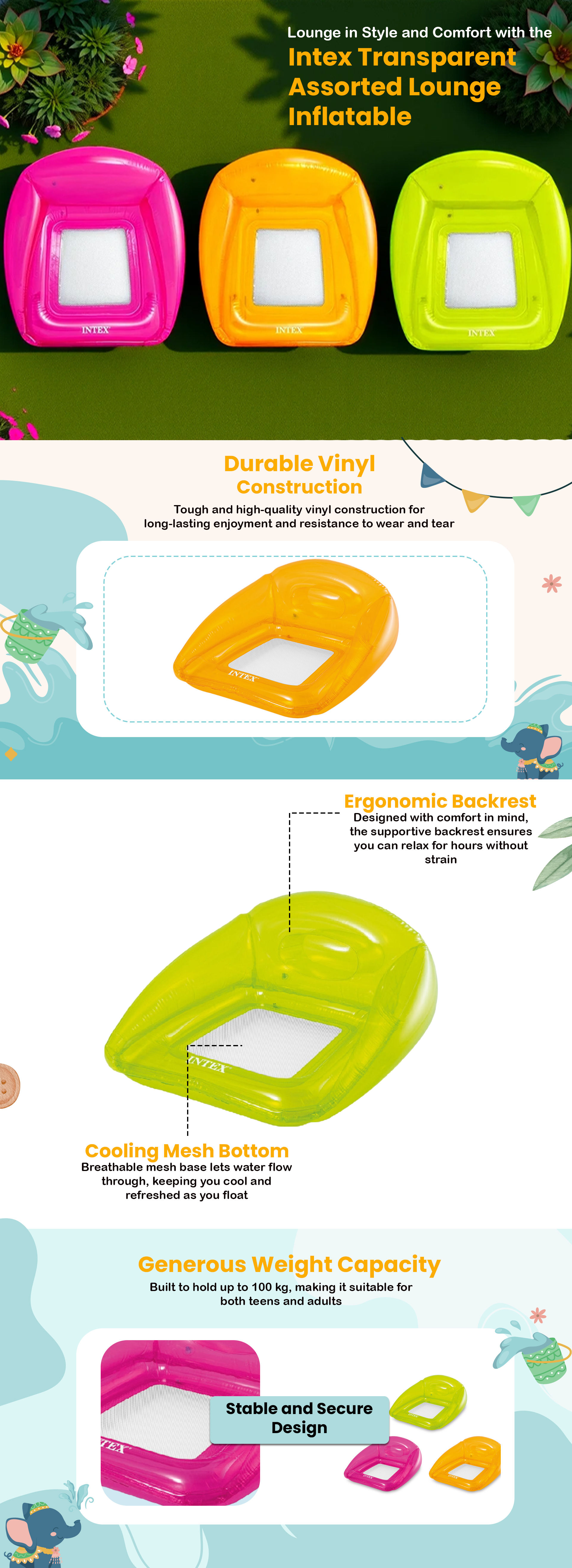 Intex Transparent Assorted Lounge Inflatable Unisex|The Kanaa