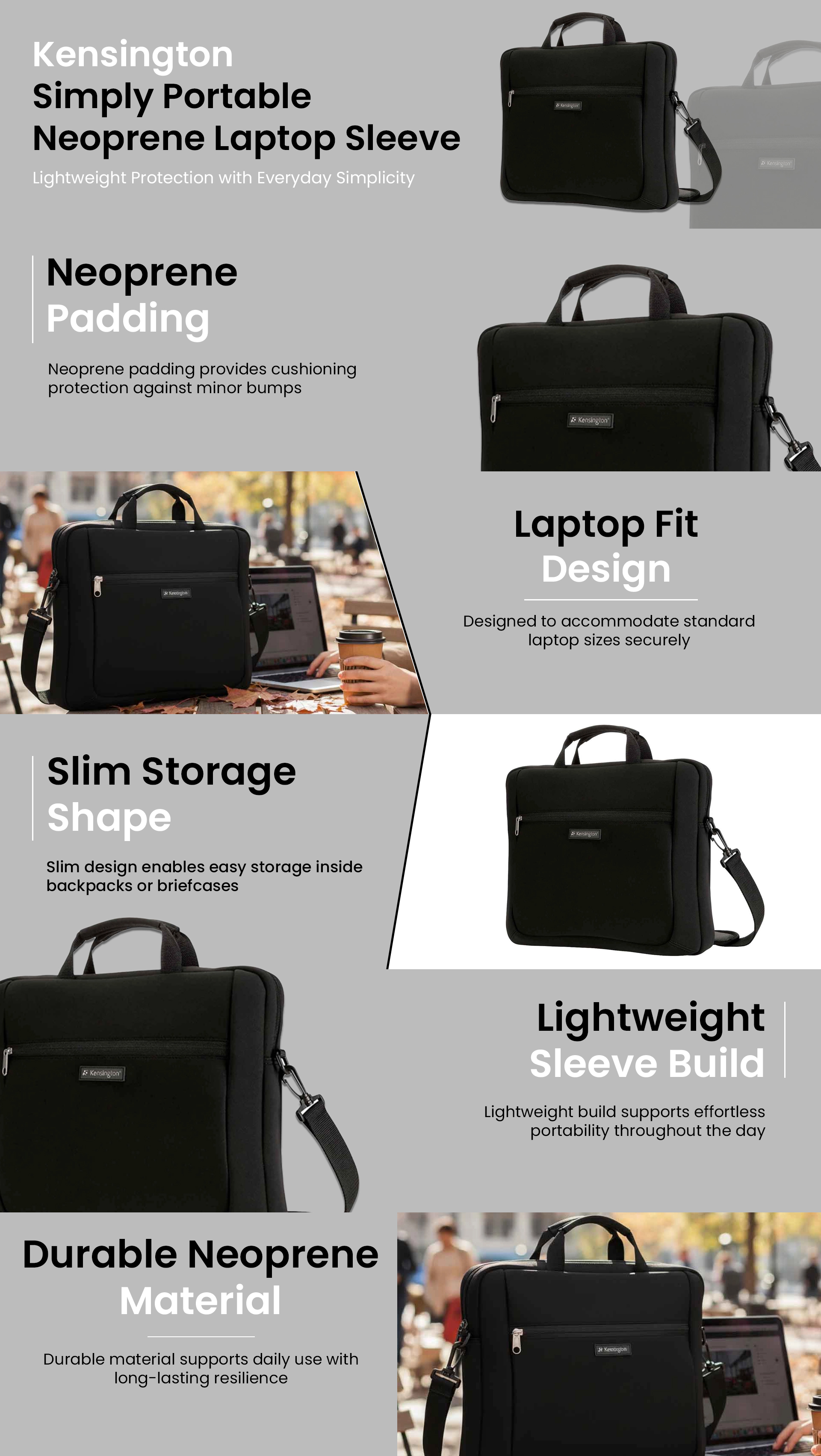 Kensington Black 15.6" Simply Portable Neoprene Laptop Sleeve|The Kanaa