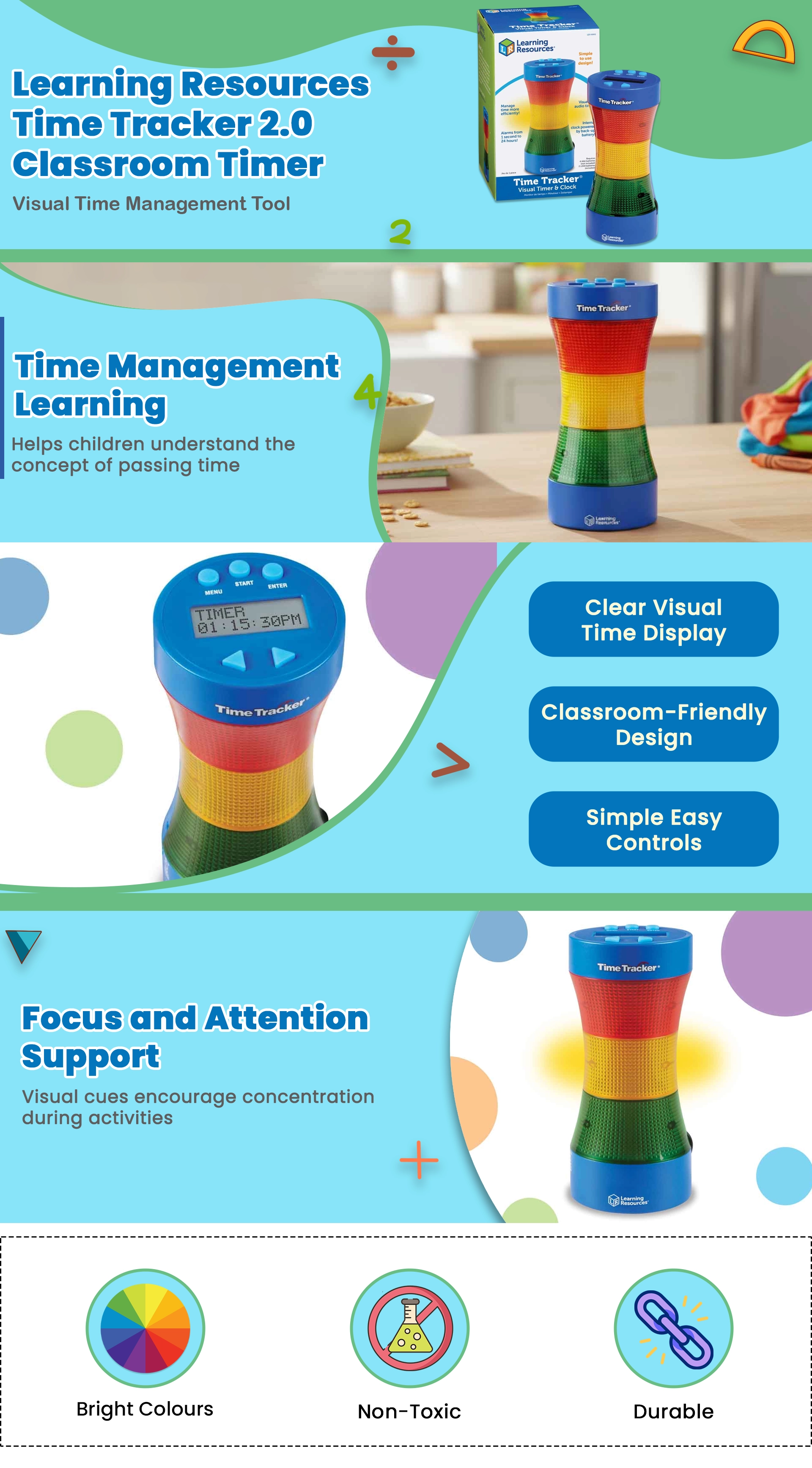 Learning Resources Time Tracker 2.0 Classroom Timer Unisex, 5-7 Years|The Kanaa